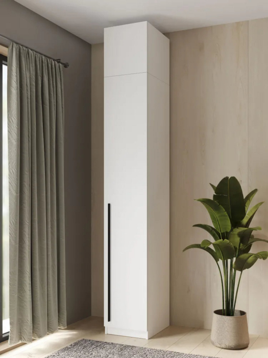Шкаф выполнен в белом цвете, что делает его универсальным решением для разнообразных стилей интерьера — от классического до современного. Простая и элегантная форма шкафа придаст вашему помещению нотку изысканности и уюта. Он станет не только функциональным предметом мебели, но и стильным элементом декора.