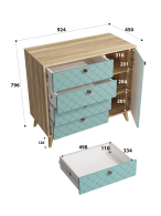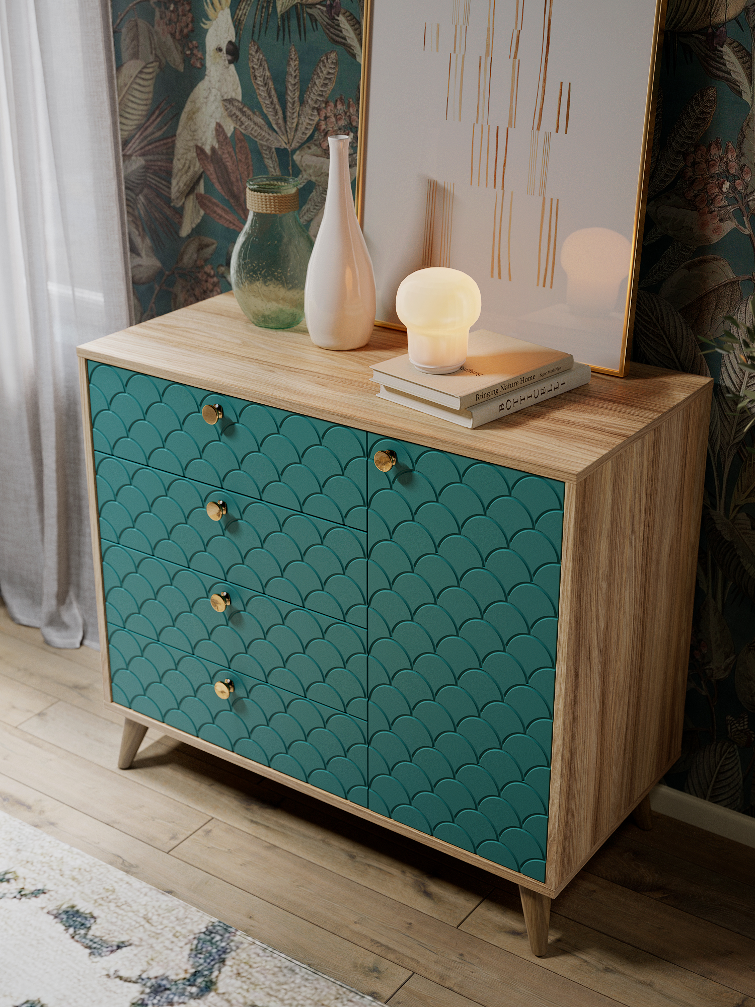 Комод Велламо ВО-11 – стильный и функциональный, идеальное решение для современного интерьера. Комод ВО-11 – это удобство, надежность и стиль в одной модели. Отличный выбор для спальни, прихожей или гостиной! Цвет: блэквуд ячменный / бирюза Материалы: ЛДСП 16 мм (корпус), МДФ 16 мм (фасады) Фурнитура: телескопические направляющие без доводчиков, металлические ручки, петли с доводчиками, деревянные опоры. Преимущества комода Велламо ВО-11: Просторное хранение – 4 выдвижных ящика на телескопических направляющих (полное выдвижение) и распашная дверца с 3 полками для аксессуаров и текстиля. Прочные материалы – корпус из ЛДСП 16 мм, фасады из МДФ с фрезеровкой для эффектного рельефа. Устойчивость и стиль – деревянные ножки высотой 120 мм придают легкость, а металлические ручки дополняют современный облик. Универсальный дизайн – подходит для скандинавского стиля, неоклассики и минимализма. Доставка и сборка: мебель поставляется в разобранном виде, в надежной упаковке, с подробной инструкцией по сборке. Сборка осуществляется самостоятельно или с привлечением специалистов.