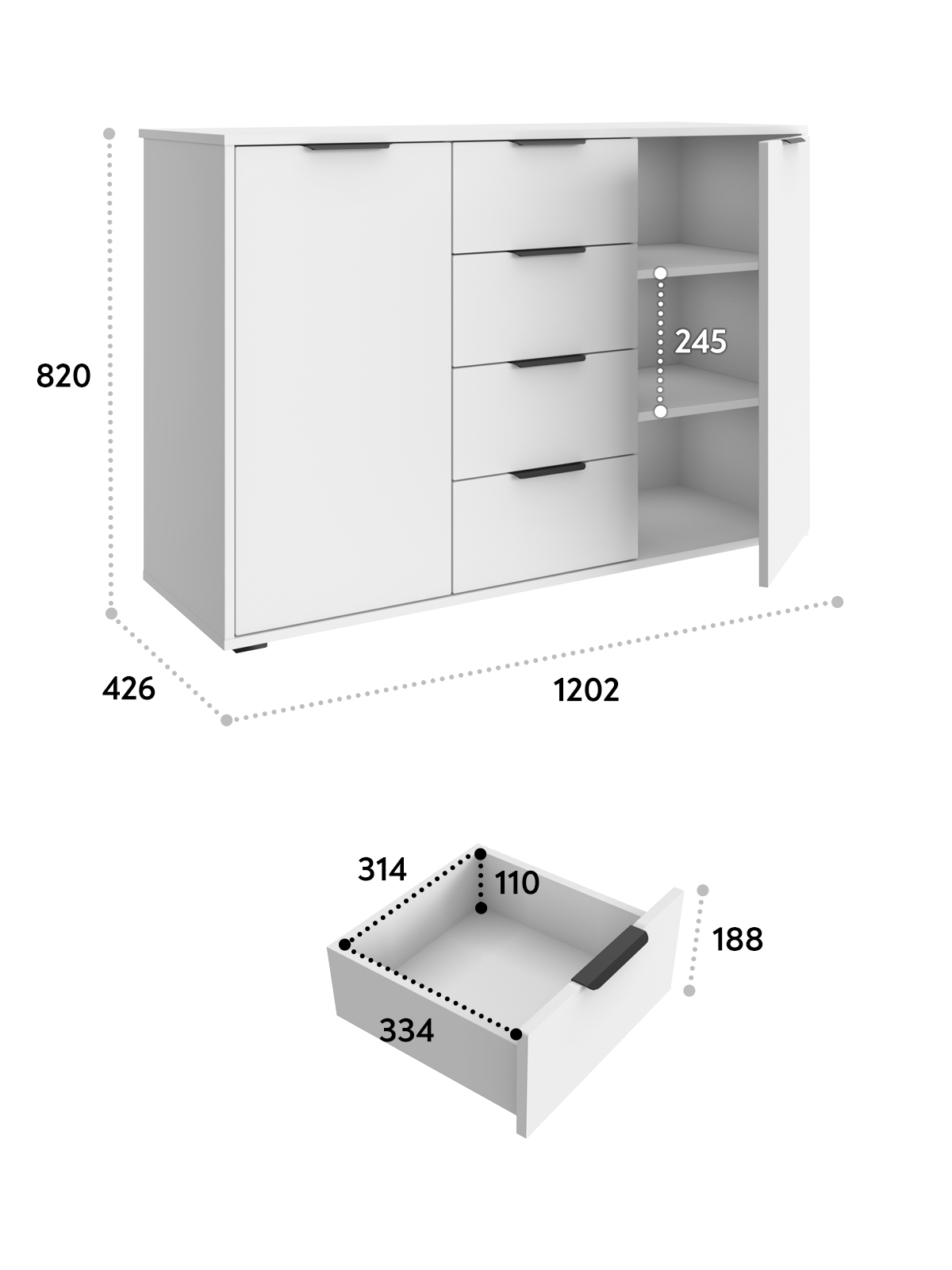 Комод Оптима ОП-17 – идеальное сочетание стиля и функциональности. Превратите свое пространство в образец порядка и уюта с комодом Оптима ОП-17 – современным решением для хранения, которое гармонично впишется в любой интерьер. Преимущества комода Оптима ОП-17: Продуманная система хранения 4 вместительных выдвижных ящика на телескопических направляющих 2 распашные дверцы с 6 полками внутри (по 3 за каждой) – идеально для систематизации вещей Свес крышки 25 мм – плотное прилегание к стене даже при наличии плинтуса Качество исполнения: Прочный корпус из ЛДСП 16 мм и изящные фасады из МДФ 16 мм Петли с доводчиками – плавное бесшумное закрывание дверок Металлические ручки – стильный акцент в современном дизайне Универсальность и практичность: Регулируемые опоры (20 мм) – устойчивость на любой поверхности Нейтральная цветовая гамма белый структурный/меренга – подойдет для большинства стилей интерьера в спальне или прихожей Технические характеристики: Размеры (Ш×В×Г): 1202×820×426 мм Материалы: ЛДСП 16 мм (корпус), МДФ 16 мм (фасады) Доставка и сборка: мебель поставляется в разобранном виде, в надежной упаковке, с подробной инструкцией по сборке. Сборка осуществляется самостоятельно или с привлечением специалистов.