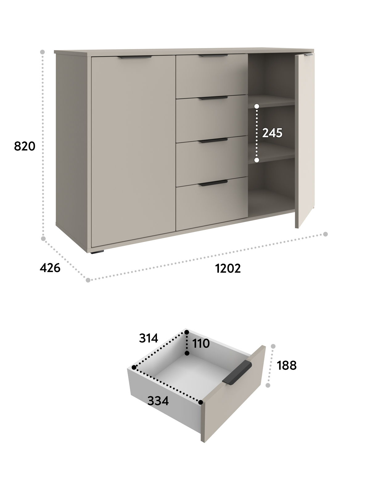 Ш 120 X В 82 X Г 43 см