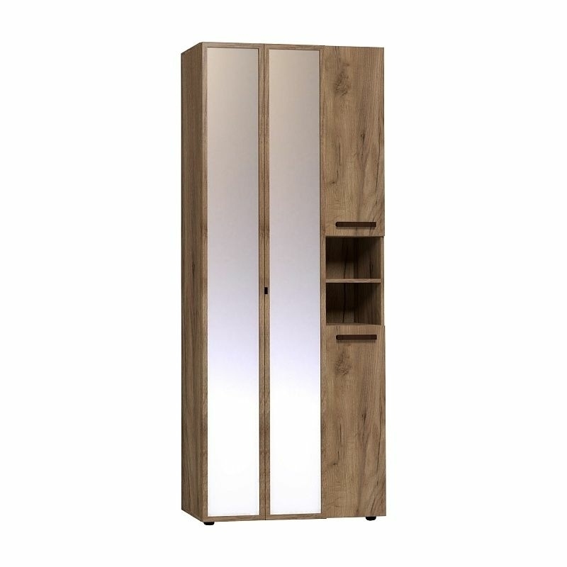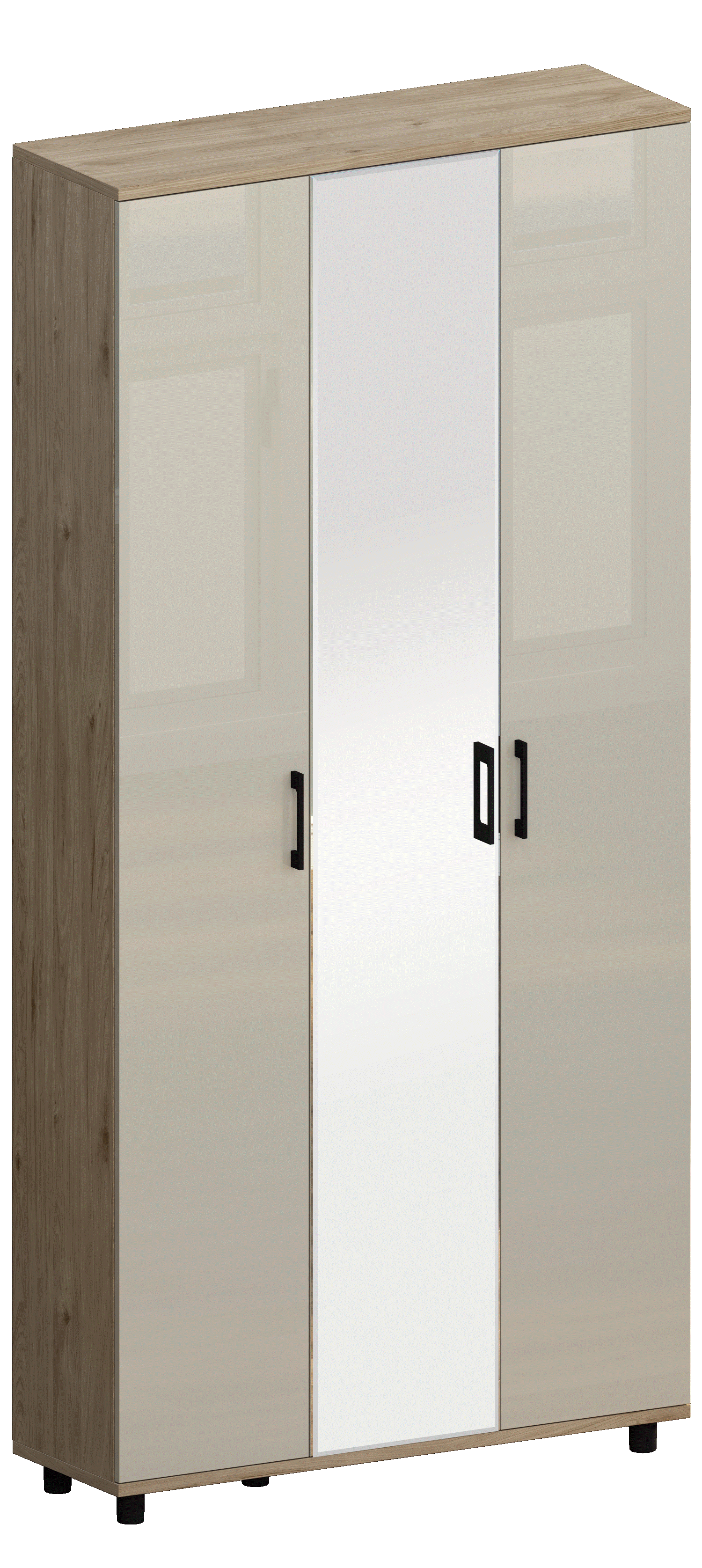 Шкаф с зеркалом в полный рост состоит из отделения для одежды, отделения с полками и большого зеркала, украшающего фасад. Отделения для одежды оборудовано выдвижной штангой для вешалок, антресольной полкой для головных уборов и нижней полкой, выделяющей нишу для обуви. Отделения с полками, расположенное в торце, увеличивает ее функциональность, без уменьшения свободного пространства в комнате. Семь полочек торцевого отделения наглядно разместят коллекцию обуви, шляпок или сумочек, позволяя Вам менять свой имидж ежедневно! Универсальная сборка поможет расположить мебель в прихожей с максимальным комфортом.