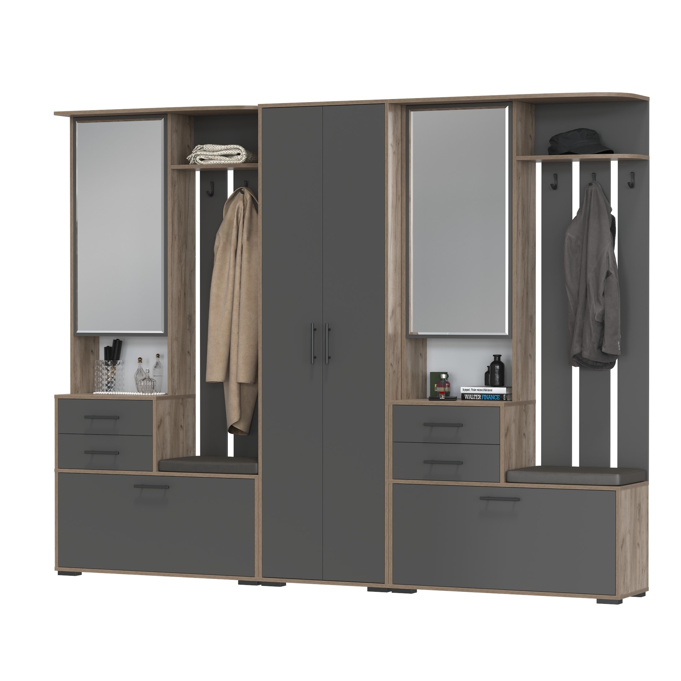 Два шкафа с вешалкой для прихожей и платяной шкаф Домино — идеальное сочетание практичности и дизайна! Ваша одежда всегда будет в порядке благодаря удобной системе хранения.