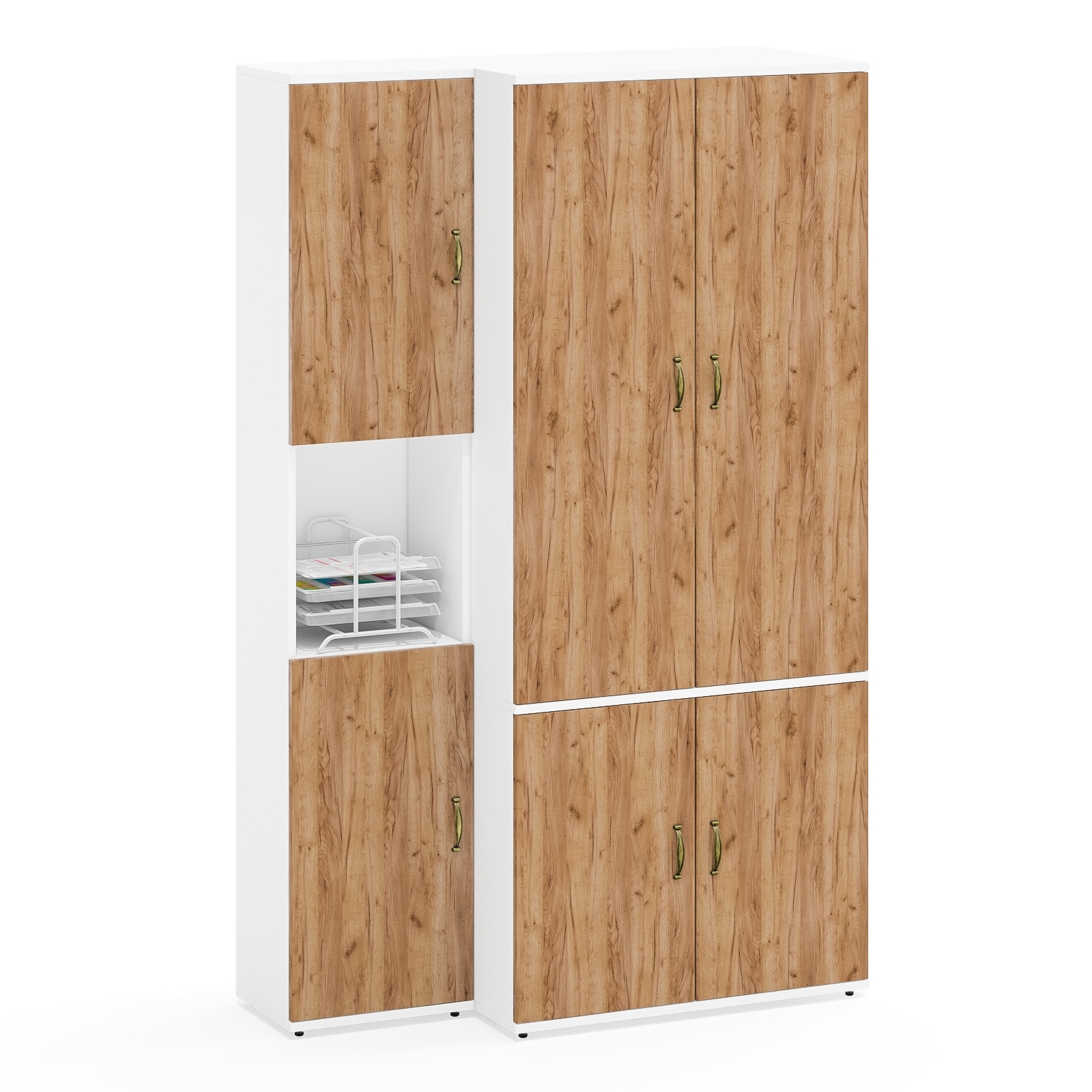 Пенал Пнл оборудован полкой сверху и снизу за распашными дверками и открытой нишей между ними - подходит для хранения книг, документов, создавая аккуратный и стильный вид. Шкаф Ш19Б состоит из двух отделений за двумя распашными дверками каждое. Верхнее отделение оснащено горизонтальной штангой для одежды на плечиках. Нижнее отделение с полкой по центру. Глубина шкафа 50 см позволяет удобно размещать одежду и другие предметы. Сторону открывания дверей пенала вы определяете при сборке.