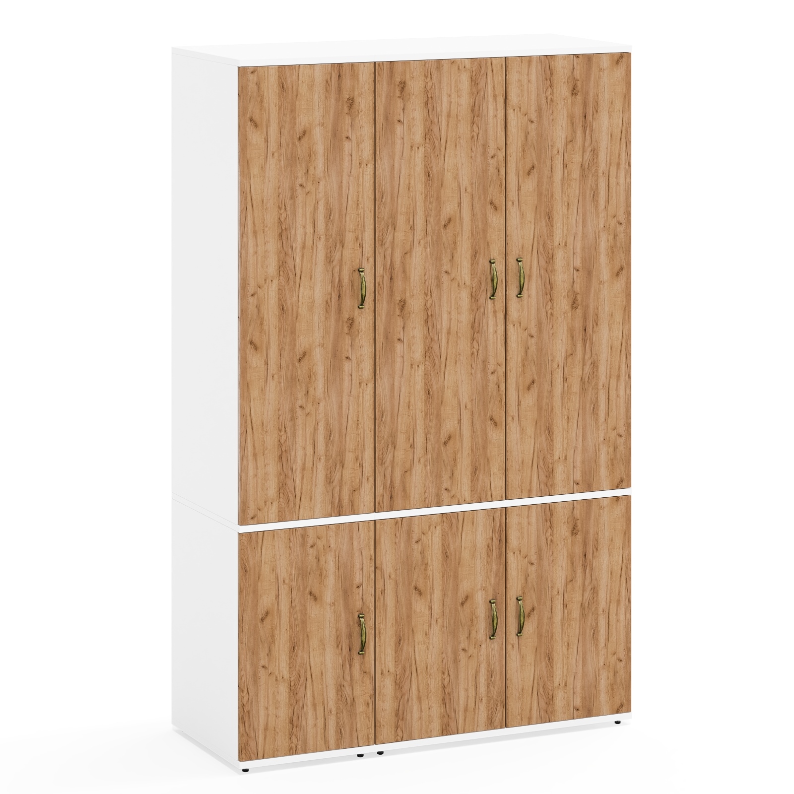 Комплектация состоит из глубокого пенала Лидер-8 П23Б и шкафа с выдвижной штангой и полками Лидер-8 Ш20Б, объединенных в единый блок.