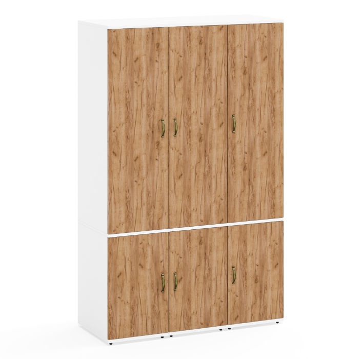 Каждый Пенал П23Б глубиной 50 см имеет два отделения - верхнее с горизонтальной штангой и нижнее с полкой за дверкой. Сторону открывания дверей каждого пенала вы определяете при сборке.