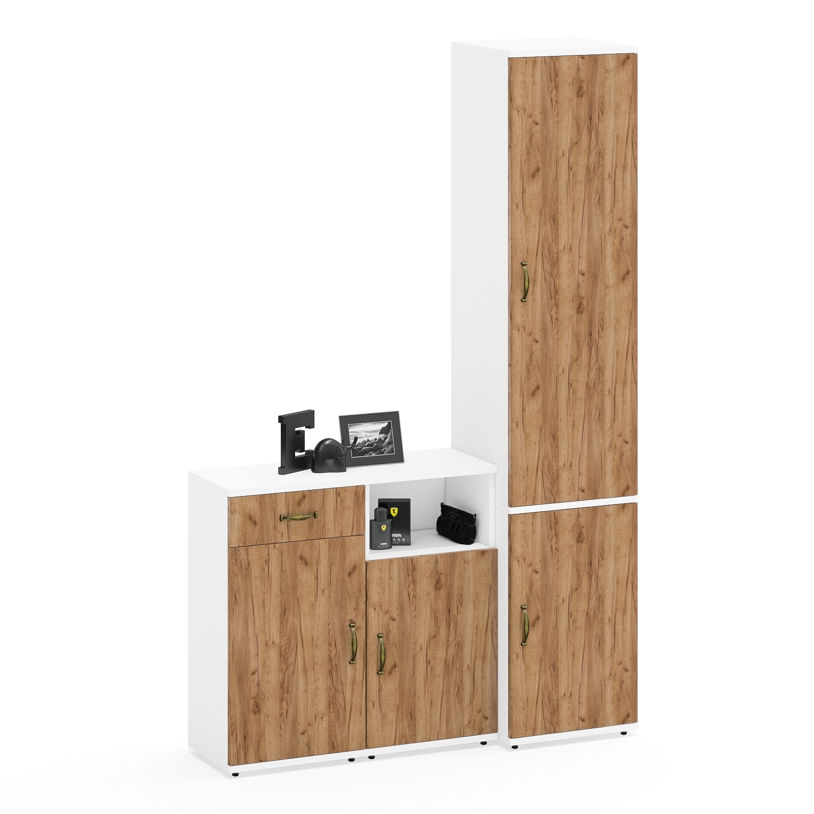 Пенал с дверками и полками и две тумбы 3.15 и 3.19 Лидер-8 – функциональный комплект для организации порядка в вашем пространстве.