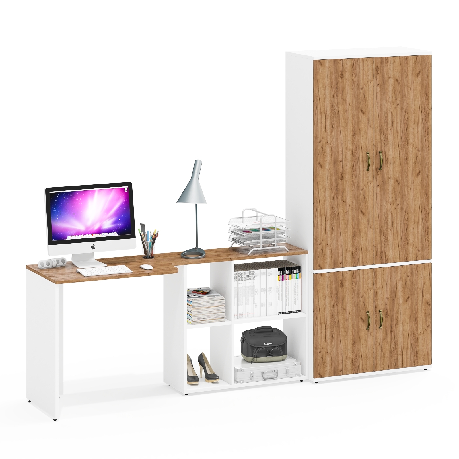 Платяной шкаф Лидер-8 и стол-трансформер – гармоничное сочетание рабочего пространства и места для хранения.