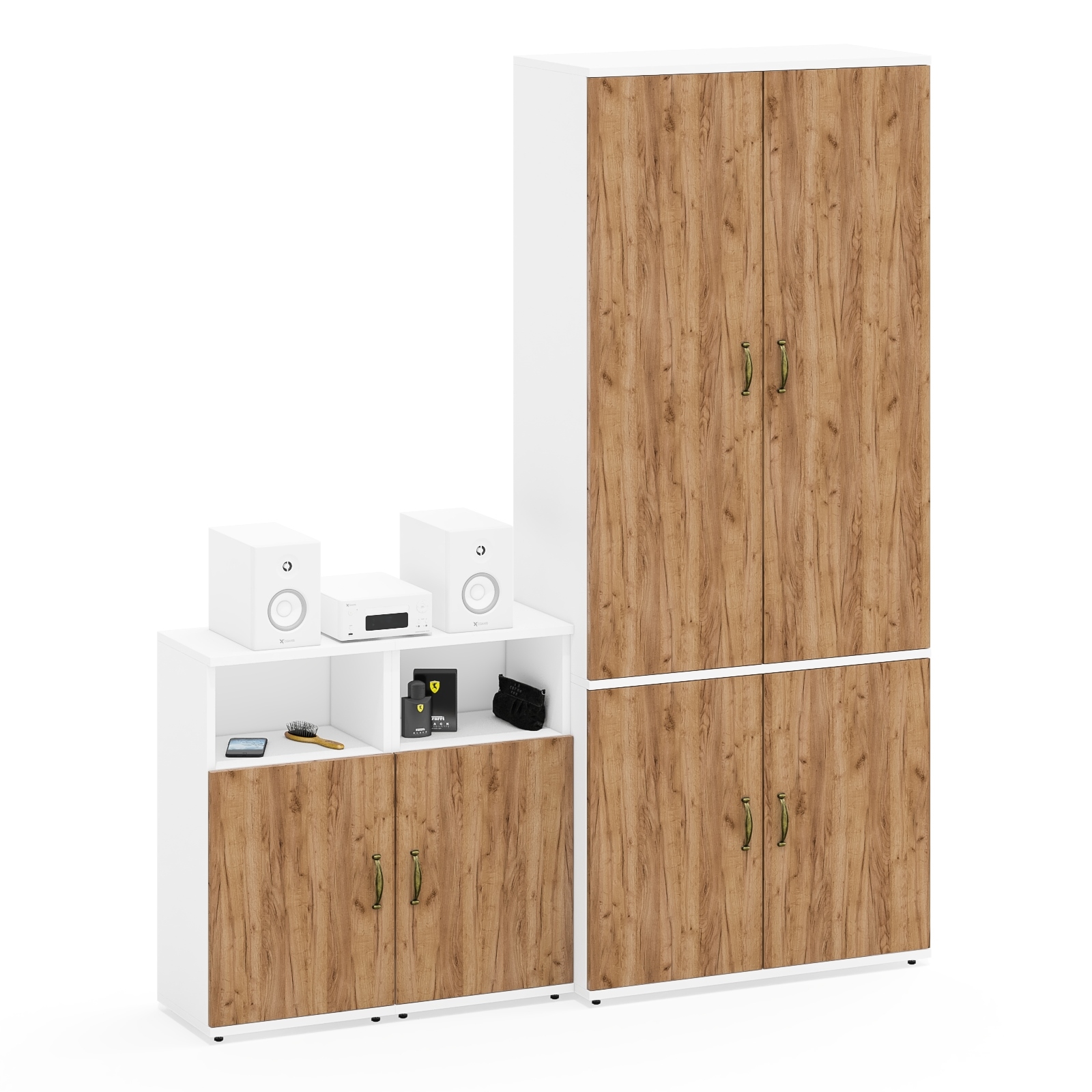 Комплектация состоит из шкафа Лидер-8 Ш20Б и двух тумб с нишей и дверкой Лидер-8 3.19.