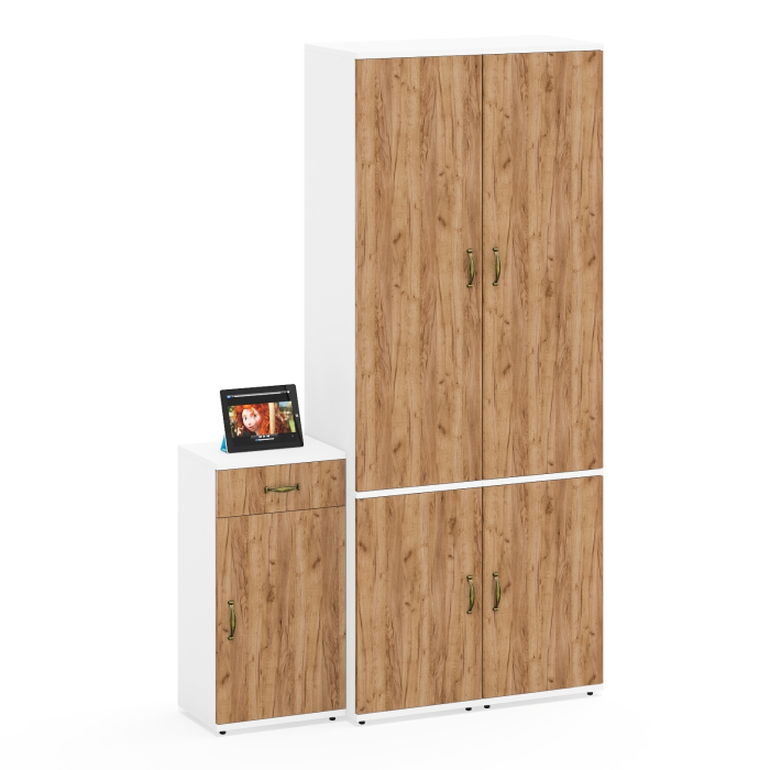 каждый пенал П22Б с двумя дверками и пятью полками идеально подходит для систематичного размещения книг, документов, аксессуаров или предметов декора. Тумба 3.15 с выдвижным ящиком сверху и дверкой является решением для размещения различных мелочей. Ящик оснащен шариковыми направляющими неполного выдвижения. Сторону открывания дверей пеналов и тумбы вы определяете при сборке.