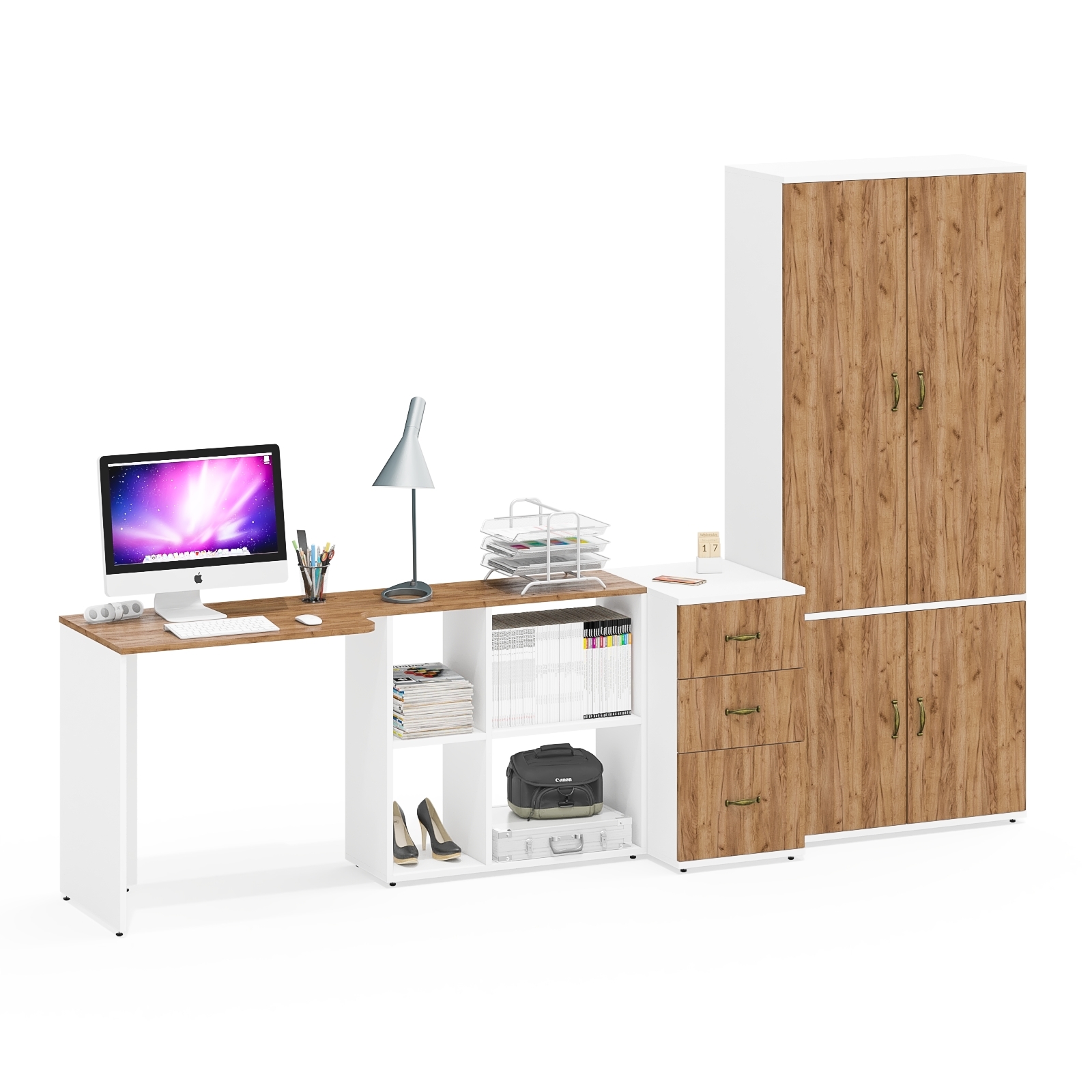 Комплектация состоит из стола-трансформера Лидер-8 СтТ, тумбы с тремя ящиками Лидер-8 3.16 и шкафа с выдвижной штангой и полками Лидер-8 Ш20Б.