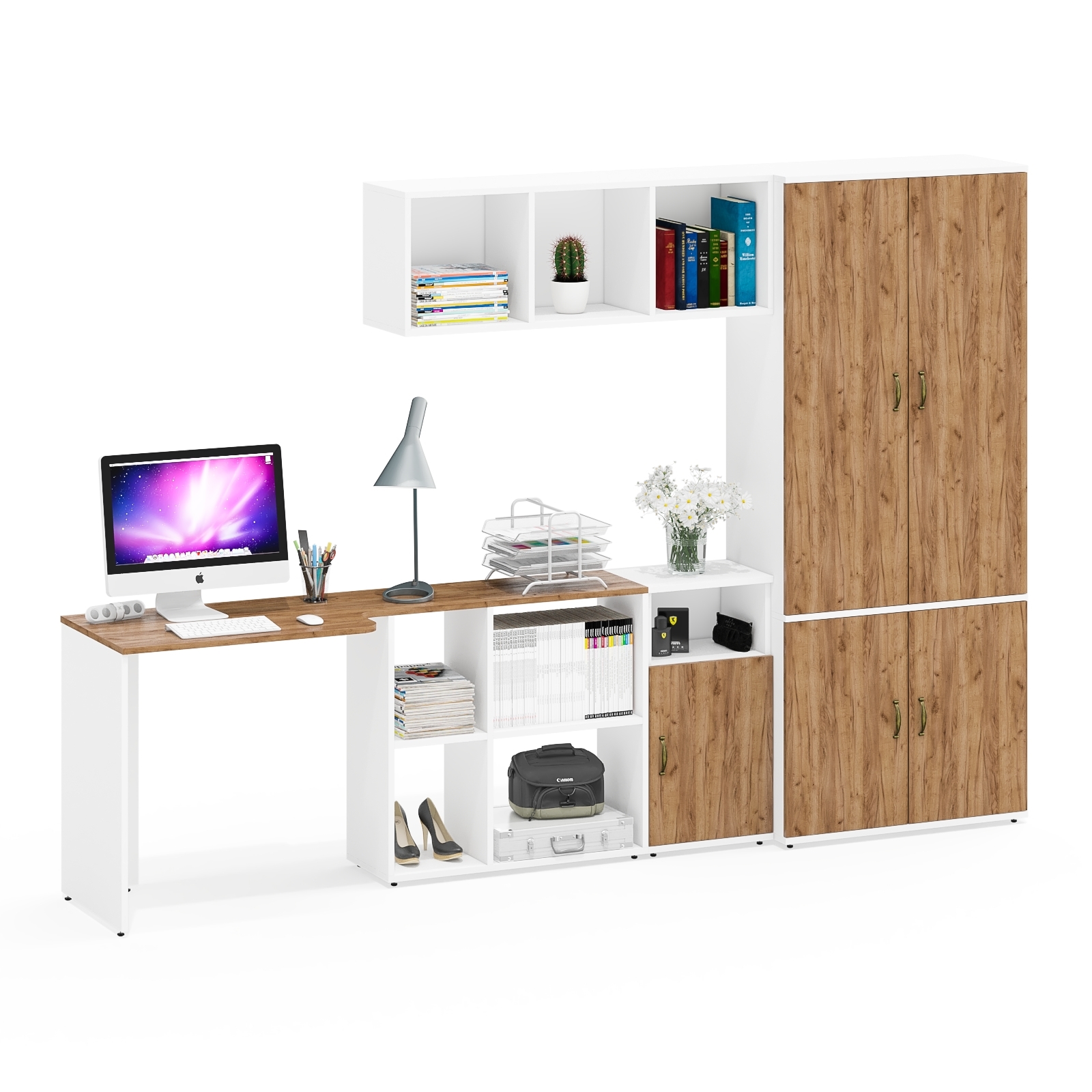 Место для работы дома Лидер-8 из стола для работы с полкой для бумаг с тумбой 3.19 и шкафом 20Б – гармоничное сочетание функциональности и стиля.