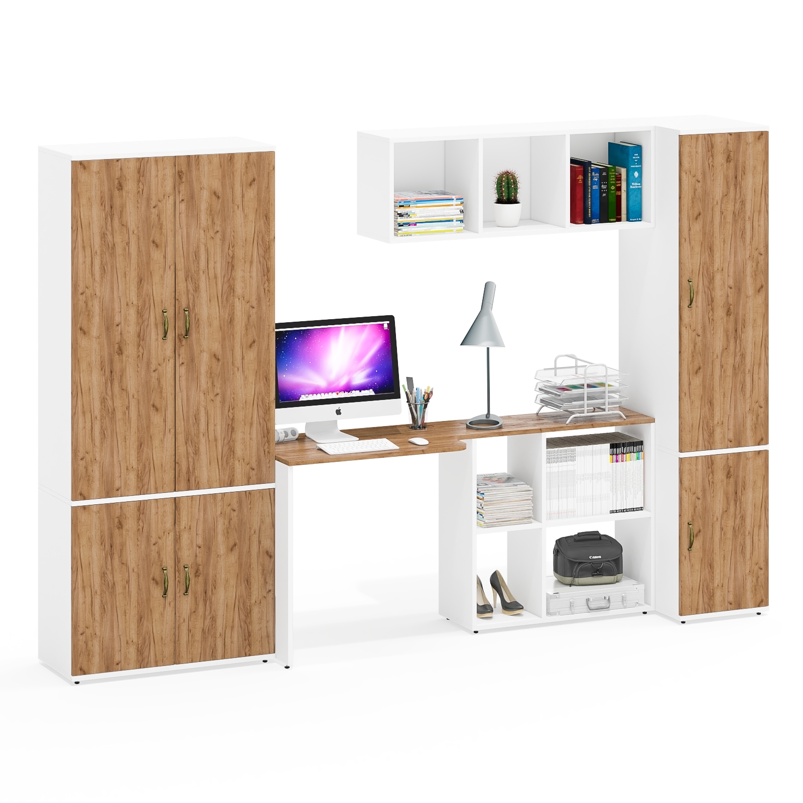 Стол-трансформер СтТ предлагает два варианта сборки - угловой (115х50/80х75 см) или прямой (165х50/30х75 см), что позволяет оптимально использовать доступное пространство. Встроенная тумба стола с четырьмя полками обеспечивает удобное хранение документов и канцелярских принадлежностей. Классическая открытая навесная полка. Разделена на 3 отделения вертикальными перегородками. Навесная полка может крепиться горизонтально или вертикально. Шкаф Ш20Б состоит из двух отделений за распашными дыерками. Верхнее отделение - слева – выдвижная штанга, что экономит пространство и облегчает доступ, справа – три полки и открытая ниша снизу, идеально подходящие для хранения аксессуаров, обуви, сумок или декоративных элементов. Нижнее отделение оснащено полкой по центру вещей.