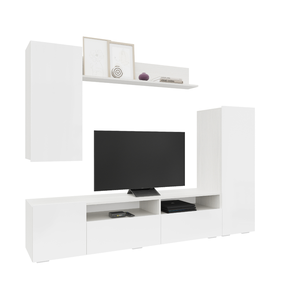 Аннели – стильная мини-гостиная для ценителей минимализма и функциональности. Лицевая фурнитура отсутствует: фасады открываются путем захвата рукой сверху или снизу. Гостиная состоит из 4-ех модулей, ШхВхГ  см: