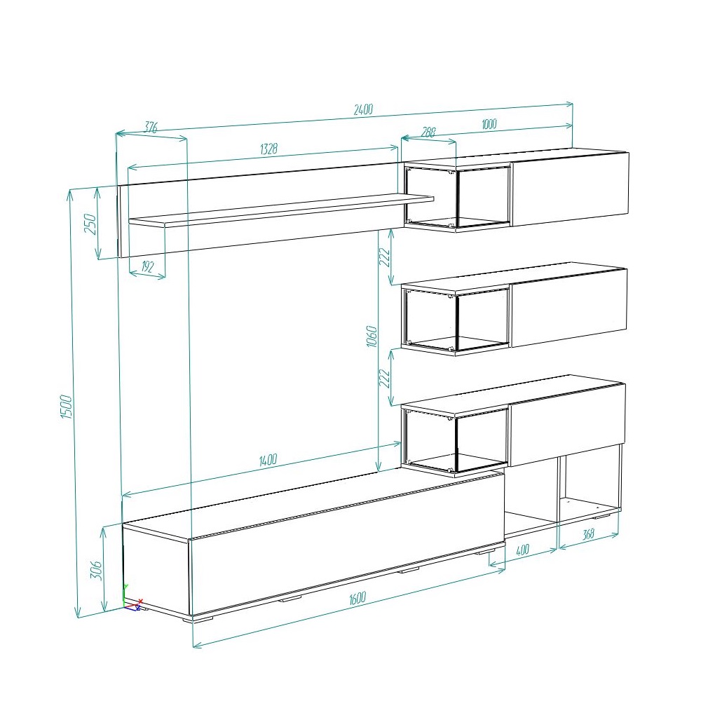 - Место под ТВ (ШхВхГ) 1400х900х352 мм.