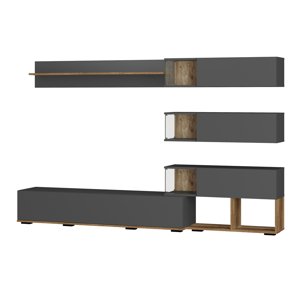 Гостиная Рига ГС-01 — это стильная и функциональная мебель для вашего дома. Строгий дизайн гостиной дополняют нестандартные детали, такие как полки-аквариумы из прозрачного стекла. Они служат для размещения красивых элементов декора или небольших светильников, создавая уют в вашем доме.