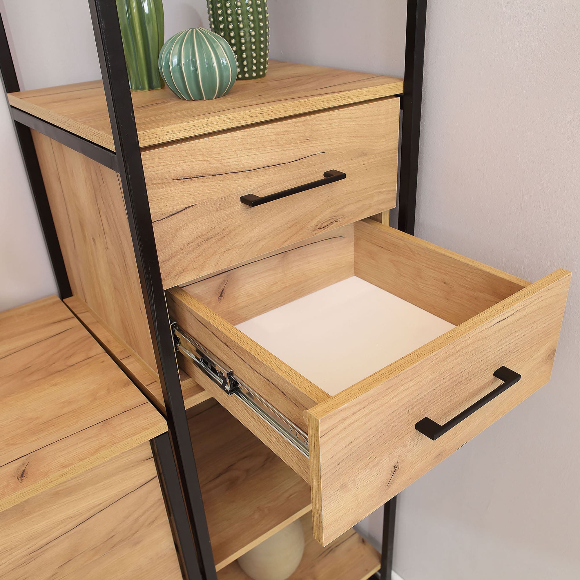 Каркас(опоры): металлический, покрыт черной матовой краской Корпус (полки): ЛДСП 16 мм с кромкой ПВХ 0,4 мм