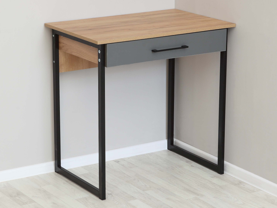 Стол письменный с ящиком на металлокаркасе (Орех/Дымчатый)