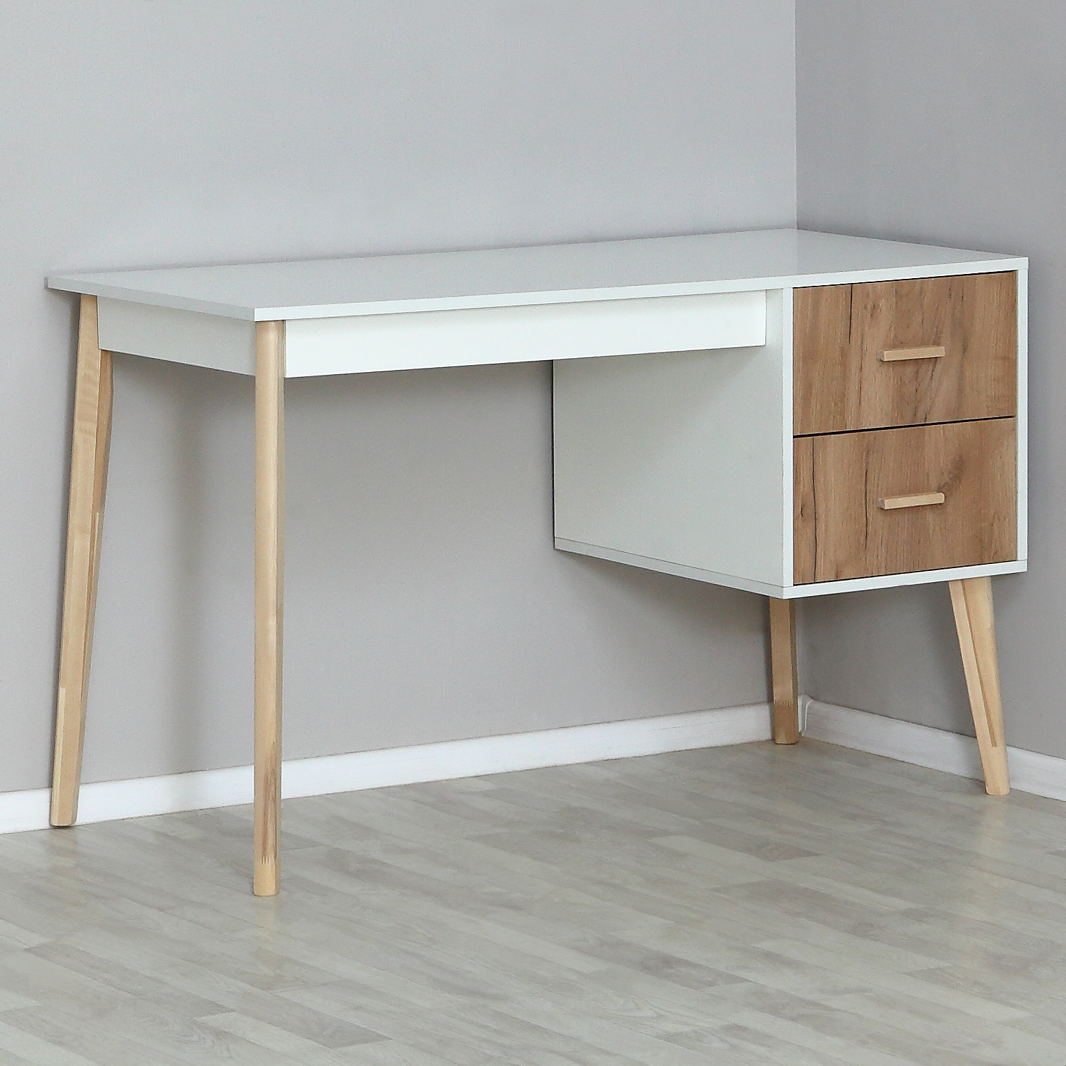 Стол письменный с тумбой Скандик (Белый жемчуг/Нельсон)