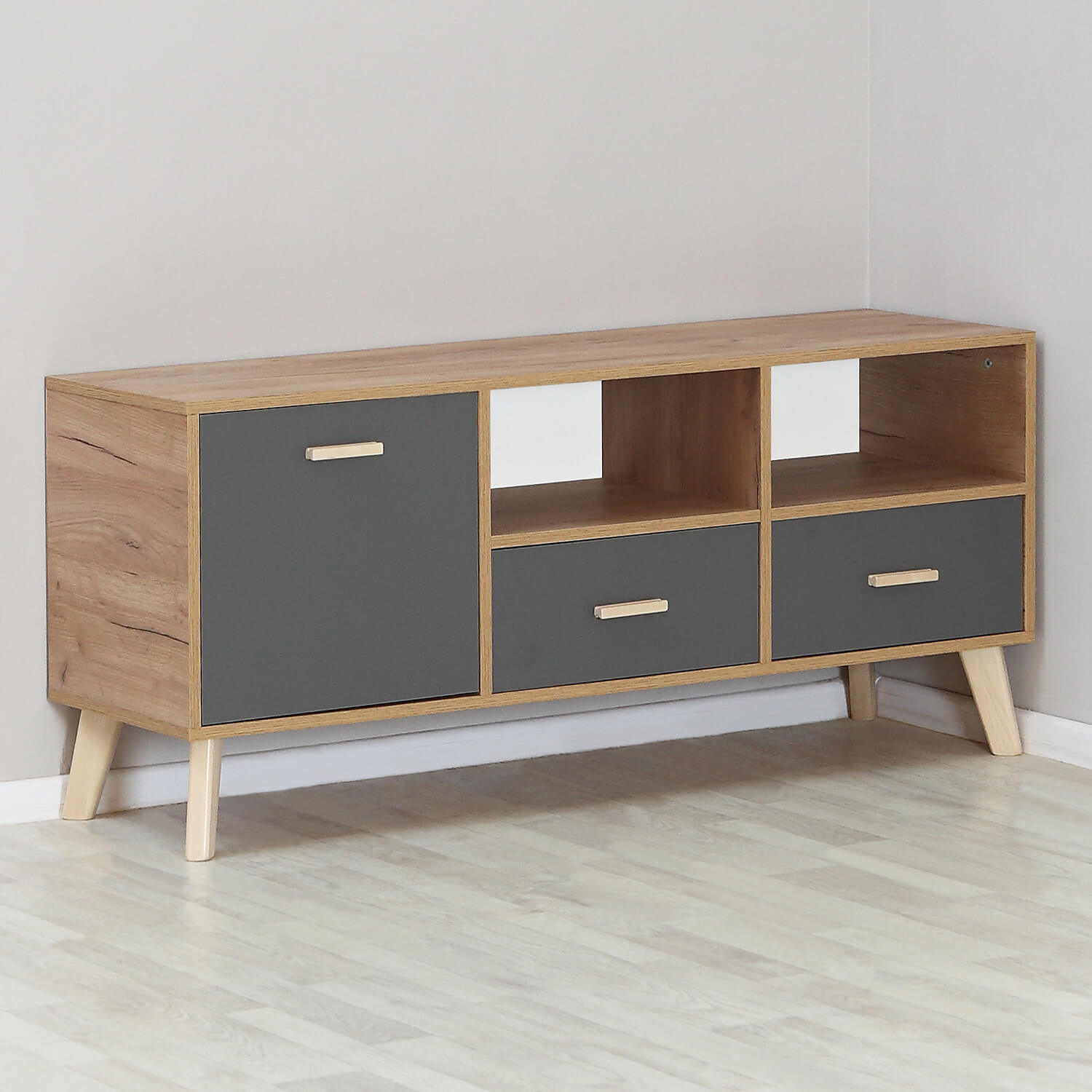 Отзывы о Столплит Тумба ТВ 1280х400х570 Скандик Ясень темный/Caiman темный
