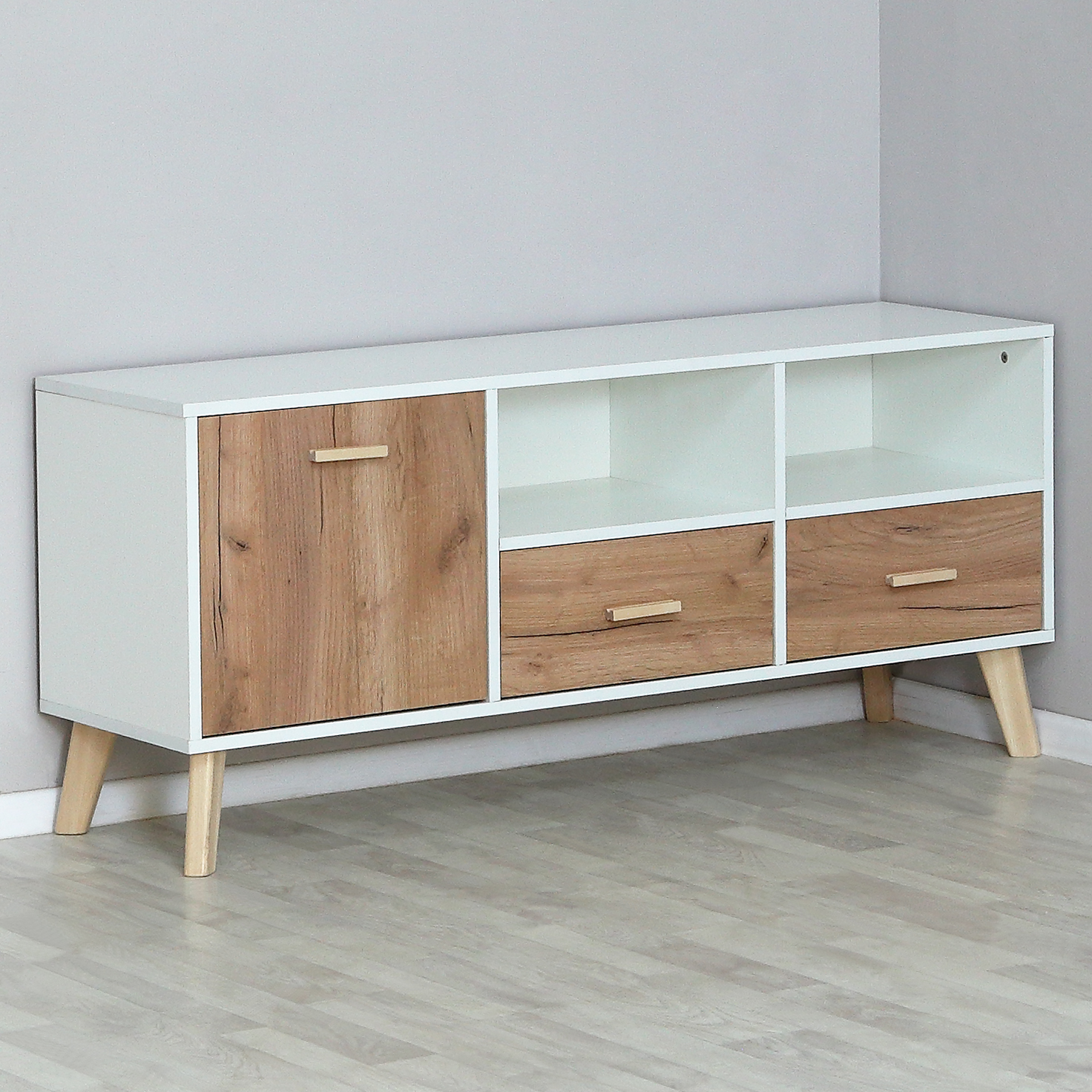Тумба ТВ 1280х400х570 Скандик (Белый жемчуг/Нельсон)