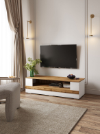 Тумба под телевизор / Тумба ТВ, Принцесса Мелания, Белый Матовый / Дуб Вотан, 403х1386х505 мм