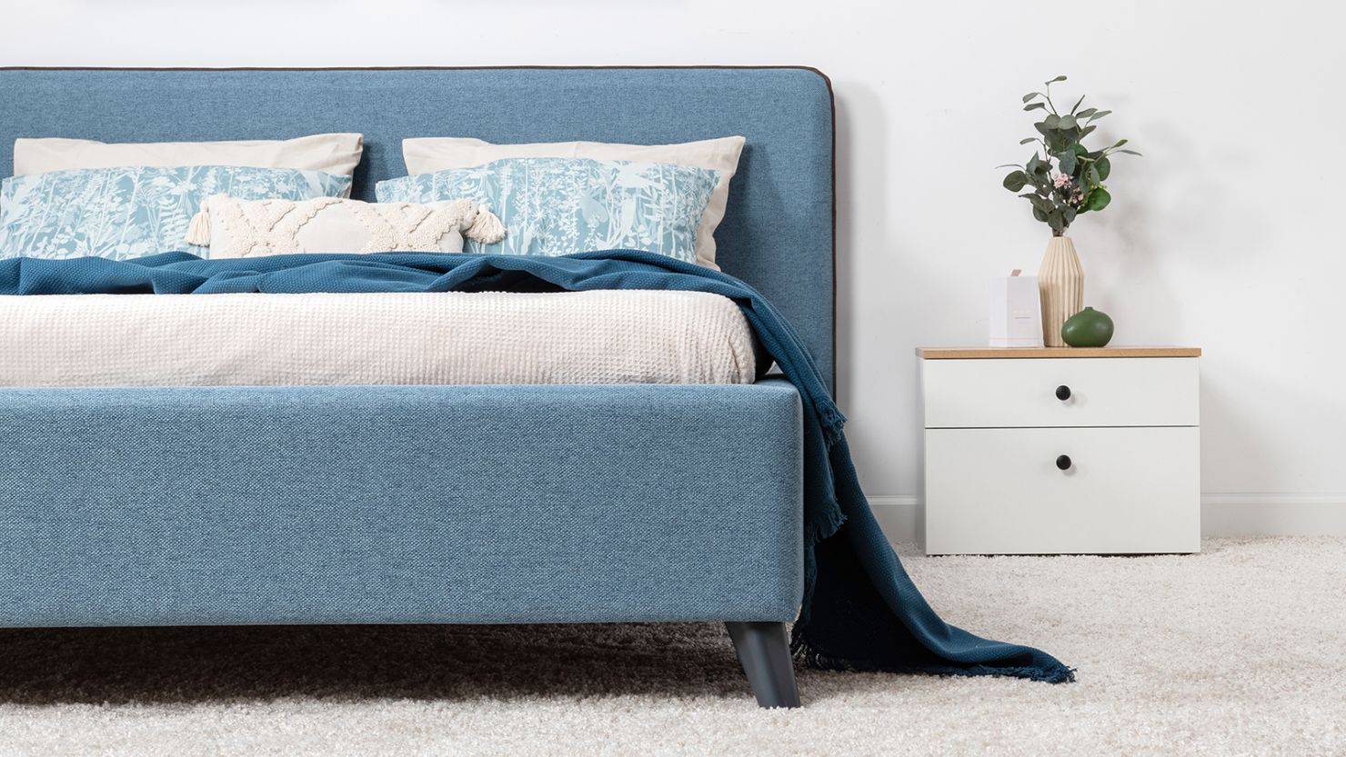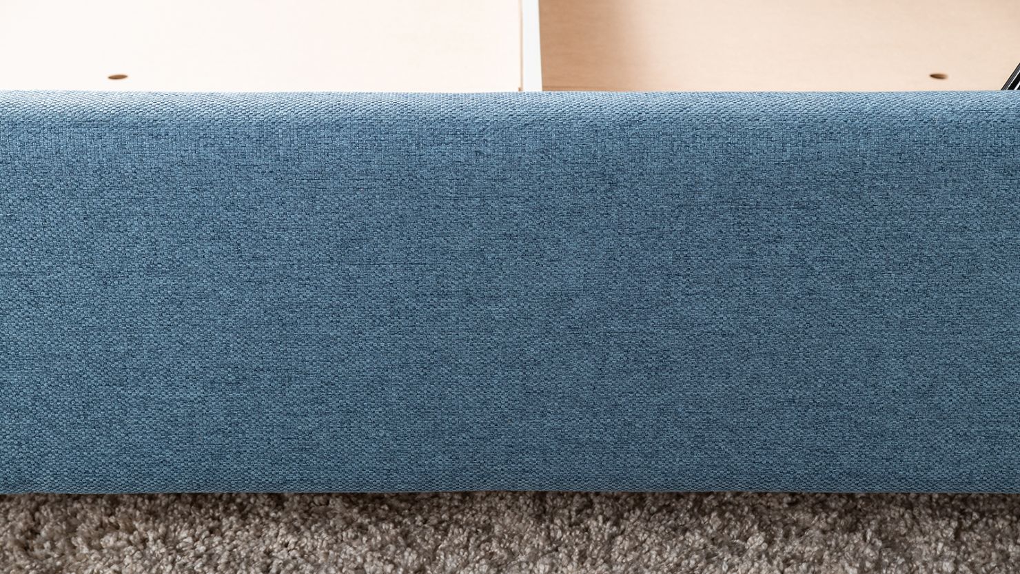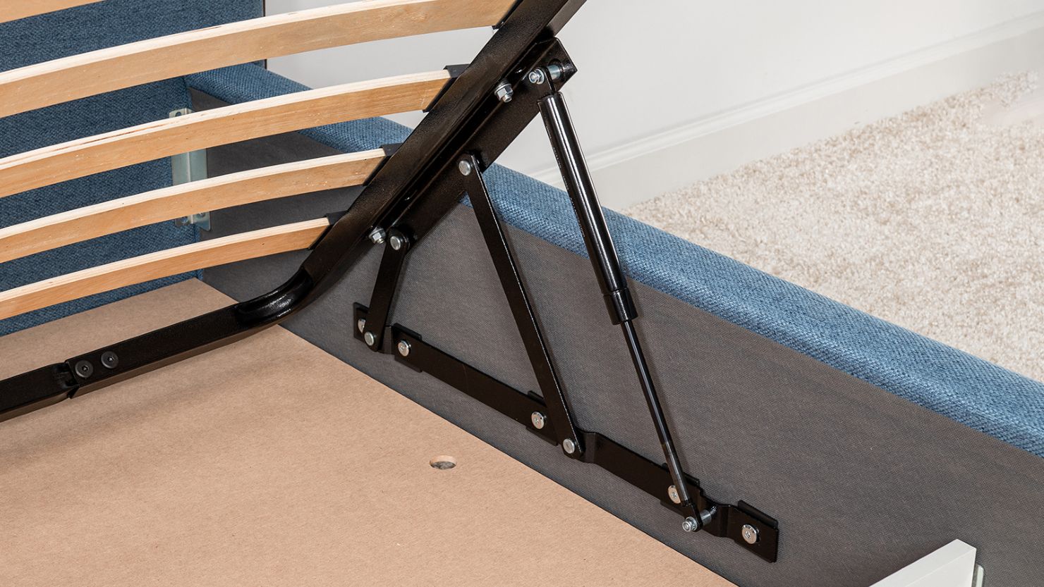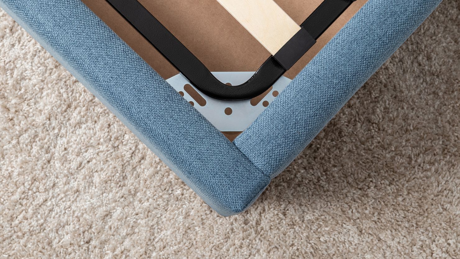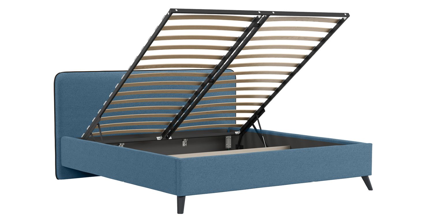 Жесткое кроватное дно из МДФ 6 мм. Задняя стенка изголовья выполнена в тех. ткани (спанбонд).