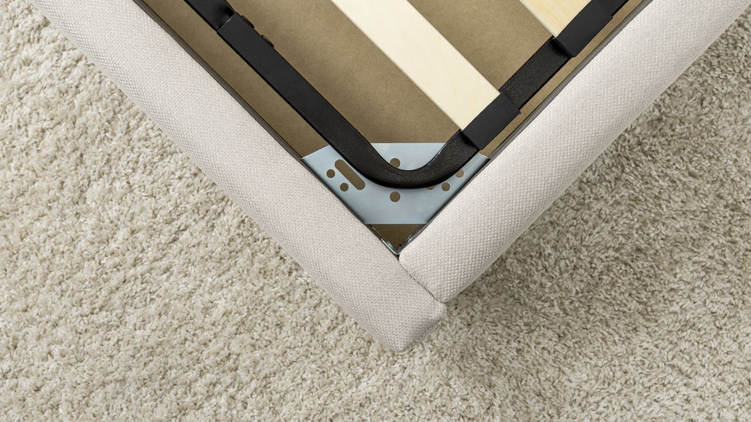 Жесткое кроватное дно из МДФ 6 мм. Задняя стенка изголовья выполнена в тех. ткани (спанбонд).