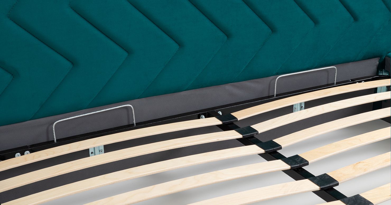 Жесткое кроватное дно из МДФ 6 мм. Задняя стенка изголовья выполнена в тех. ткани (спанбонд).