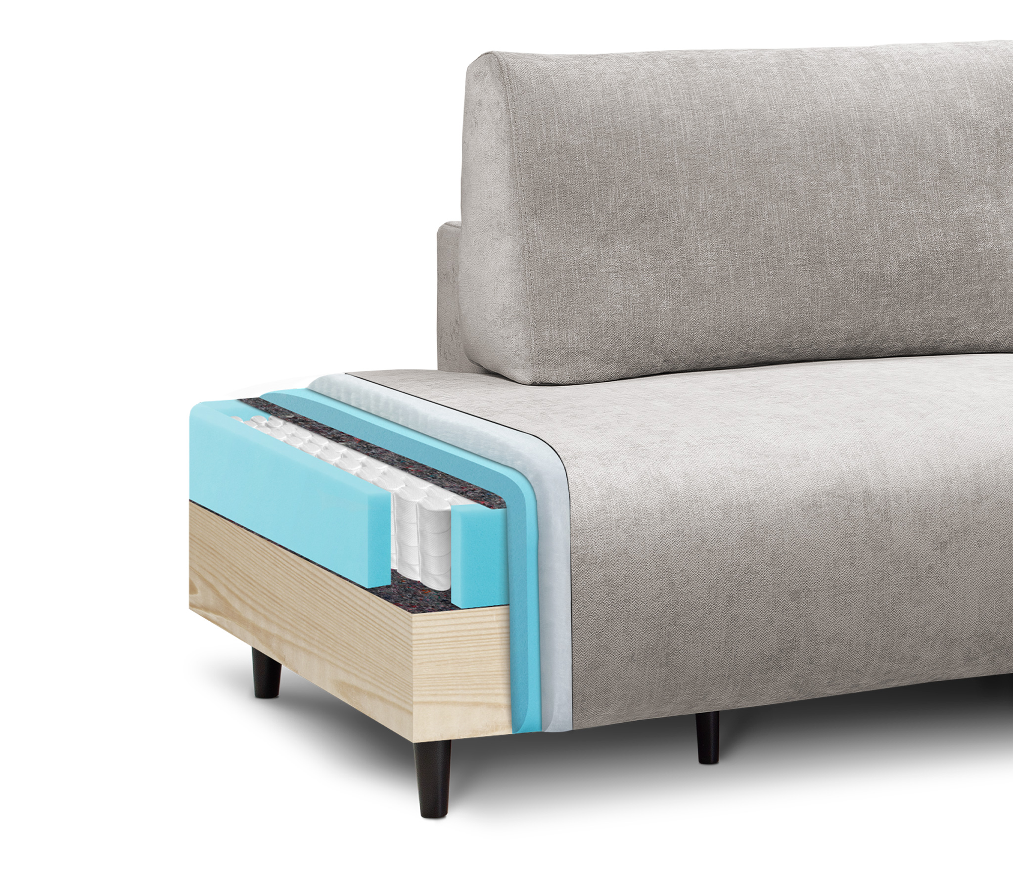 Данная модель оснащена механизмом трансформации «Пантограф» и блоком независимых пружин, благодаря которому диван превращается в комфортное спальное место для ежедневного сна.