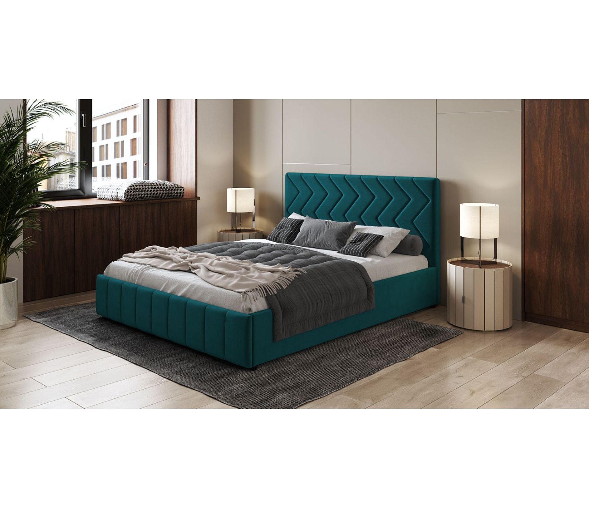 Интерьерная кровать МИЛАНА выполнена в благородном велюре, что подчеркивает объем и геометрию стежки. Выбор сочных цветов обивки делает эту кровать особенно эффектной.