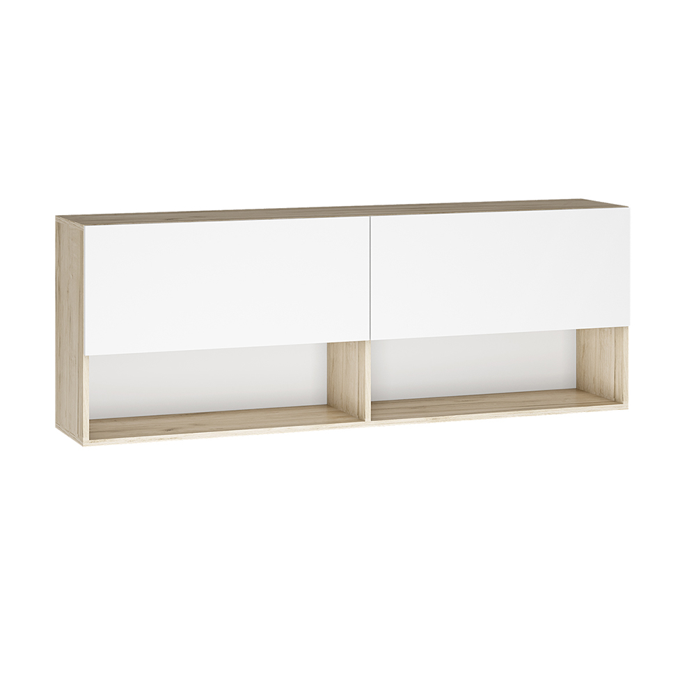 Модульная коллекция Вирола украсит вашу гостиную. Белые глянцевые фасады отлично сочетаются с корпусом в древесных оттенках. Лицевая фурнитура отсутствует, фасады открываются с помощью захвата рукой
