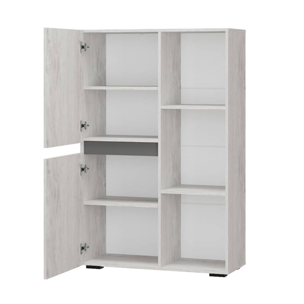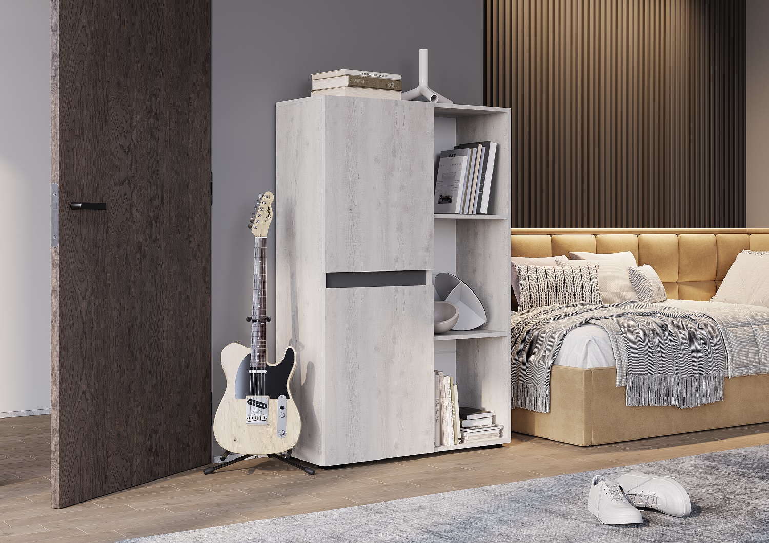 Современная компактная гостиная Мрия выполнена в трендовом цвете Бетон пайн светлый. Серия состоит из самого необходимого: тумба под ТВ, вместительные пеналы и открытая навесная полка, и позволит не загромождать комнату мебелью, а эффективно использовать пространство.