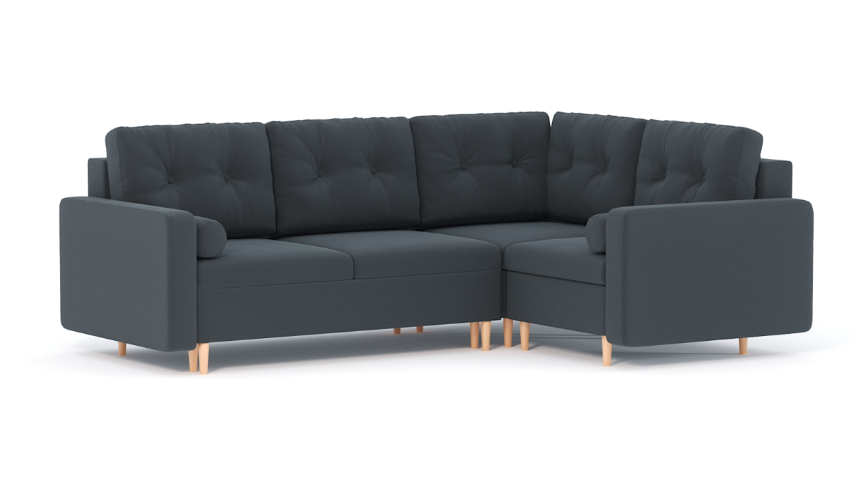 Диван-кровать угловой еврокнижка-пантограф Белфаст модульный, велюр (Темно-серый)