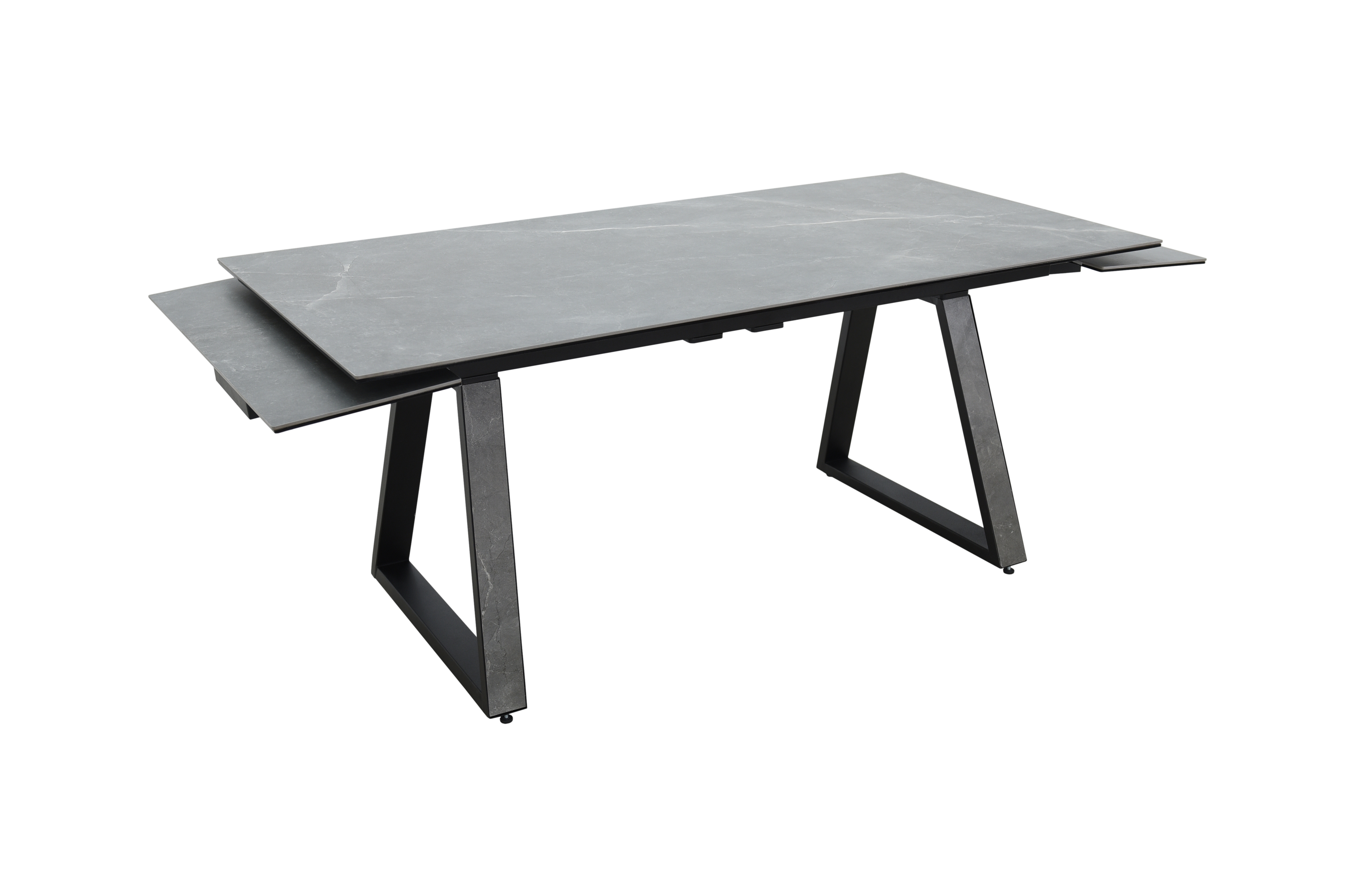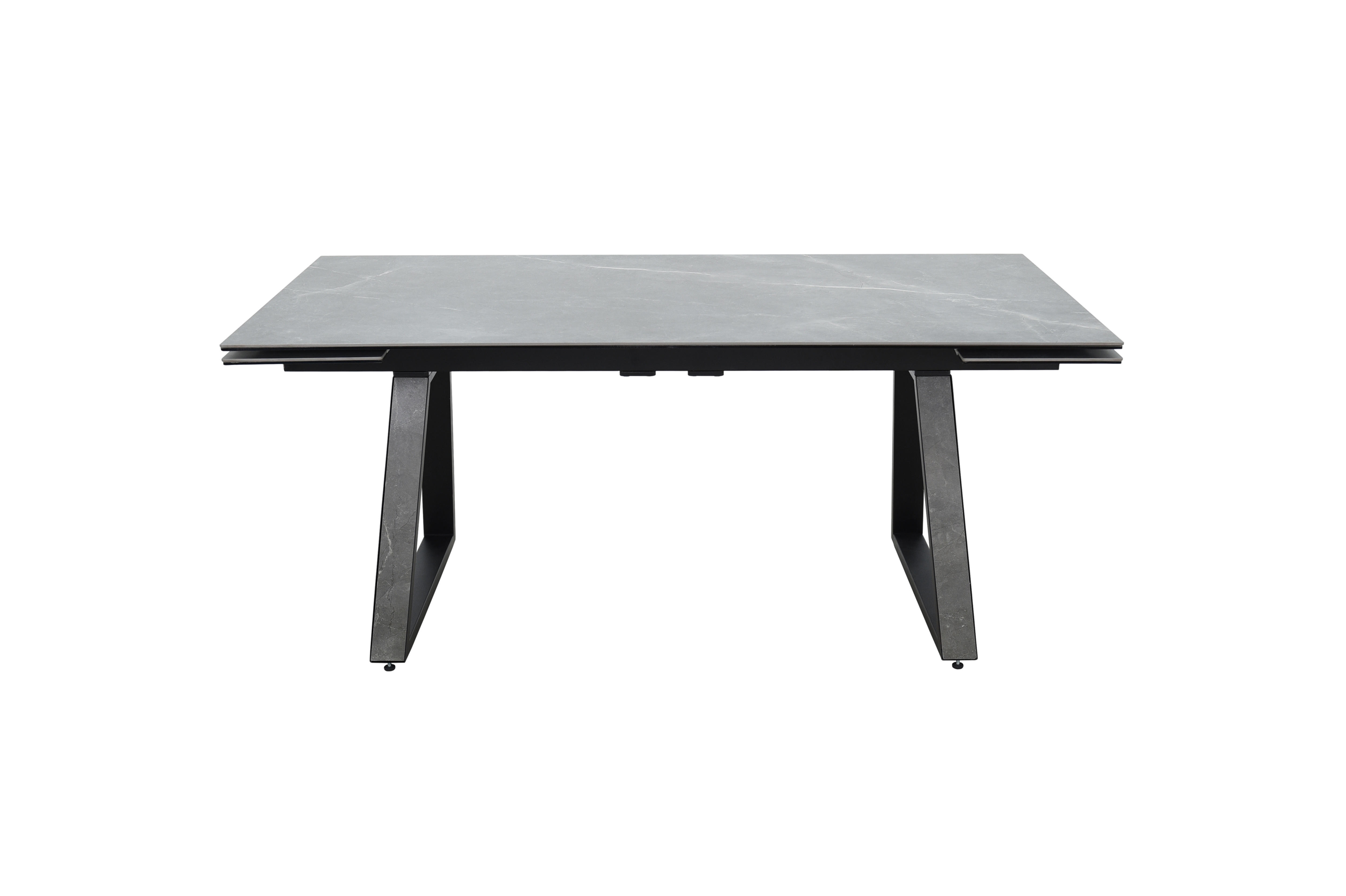 Обеденный стол с двумя торцевыми механизмами подъёма вставкок, опоры металлические окрашеные.