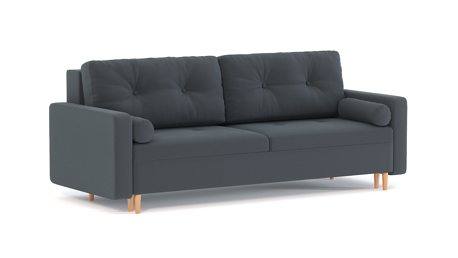 Механизм трансформации-пантограф. Наполнение высокоэластичный ППУ. Жесткость-средняя. Чехол подушек несъемный, наполнение-крошка ППУ. Каркас ДСП, ДВП, ЛДСП, фанера, брус хвойных пород. Спальное место 1950х1440. Ящик для белья есть. Опоры массив березы. Высота опоры 150мм. Высота сиденья 420мм. Глубина сиденья без подушек 760мм. В комплекте 2 большие подушки и 2 подушка/валика.