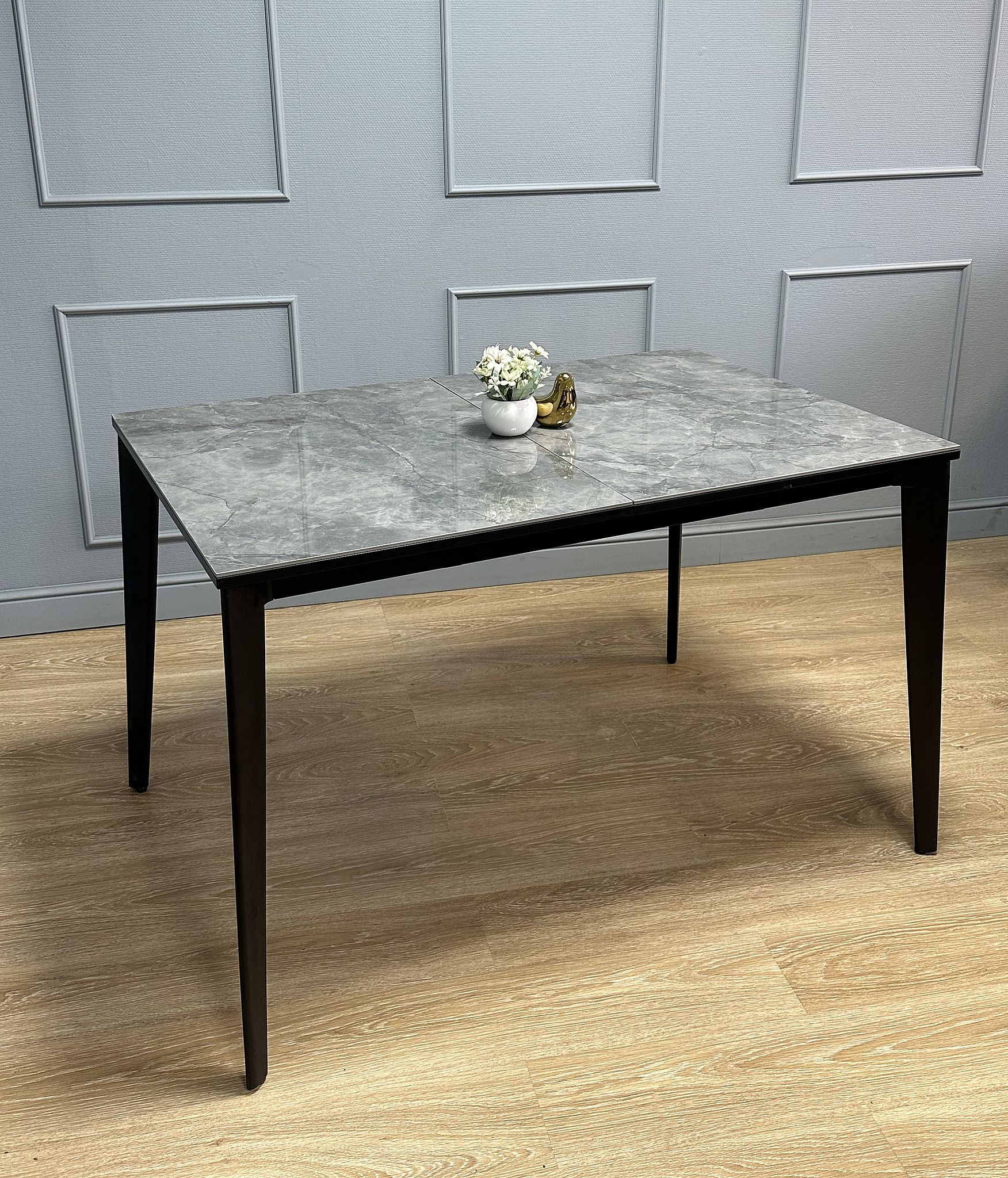 Стол с керамической столешницей и красивыми, функциональными опорами. Керамических столов такого размера очень мало, а размер 120*80 см оптимален для кухни до 13 кв.м. Система раскладки увеличивает стол ещё на 45 см благодаря синхронному механизму раздвижения и прогрессивного механизму вставки "дельфин". Вставка с керамикой очень тяжёлая и требует специального механизма, предназначенного для керамики. Стол сможет разложить даже ребенок