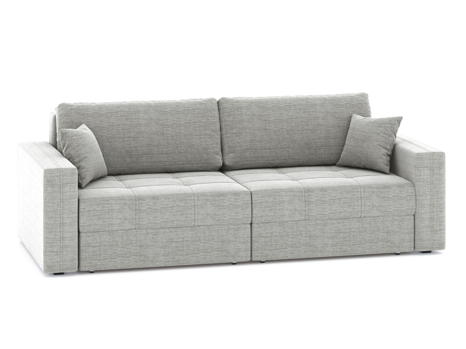 Механизм трансформации еврокнижка-трансформер. Наполнение НПБ (независымый пружинный блок)+ППУ. Жесткость-средняя. Чехлы подушек съемные на молнии, наполнение-крошка ППУ. Каркас ДСП, ДВП, ЛДСП, фанера, брус хвойных пород. Ящик для белья есть. Спальное место 2000х1660. Высота сиденья 450мм. Глубина сиденья без подушек 960мм. В комплекте 2 большие подушки и 2 декоративные подушки.