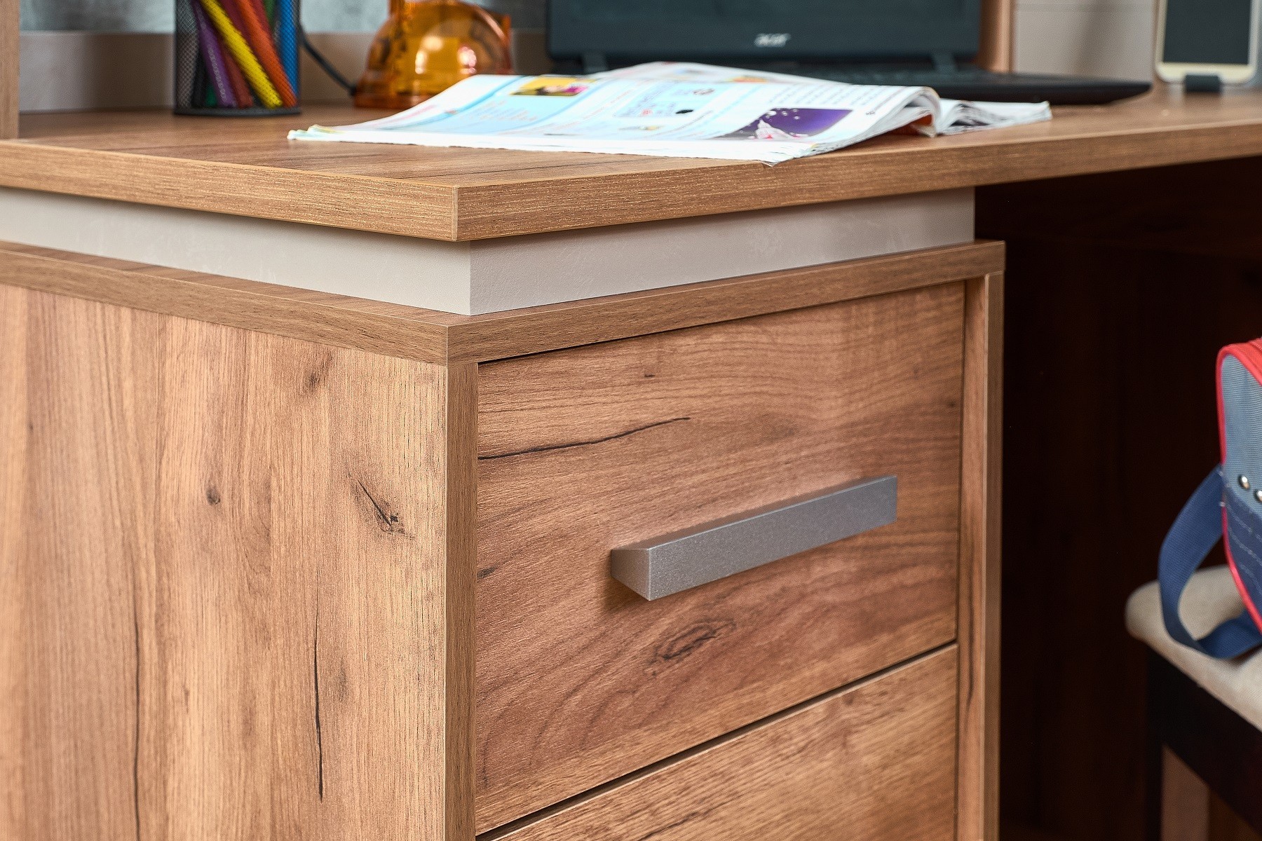 Коллекция для молодежной NATURE в сочетании древесного декора Дуб Табачный и Мокко в тиснении лофт подойдет как для детей, так и для подростков. Мебель в трендовых декорах выглядит действительно круто! Мы постарались сделать молодежную NATURE такой, чтобы детям любого пола и возраста было в их комнате удобно и комфортно.