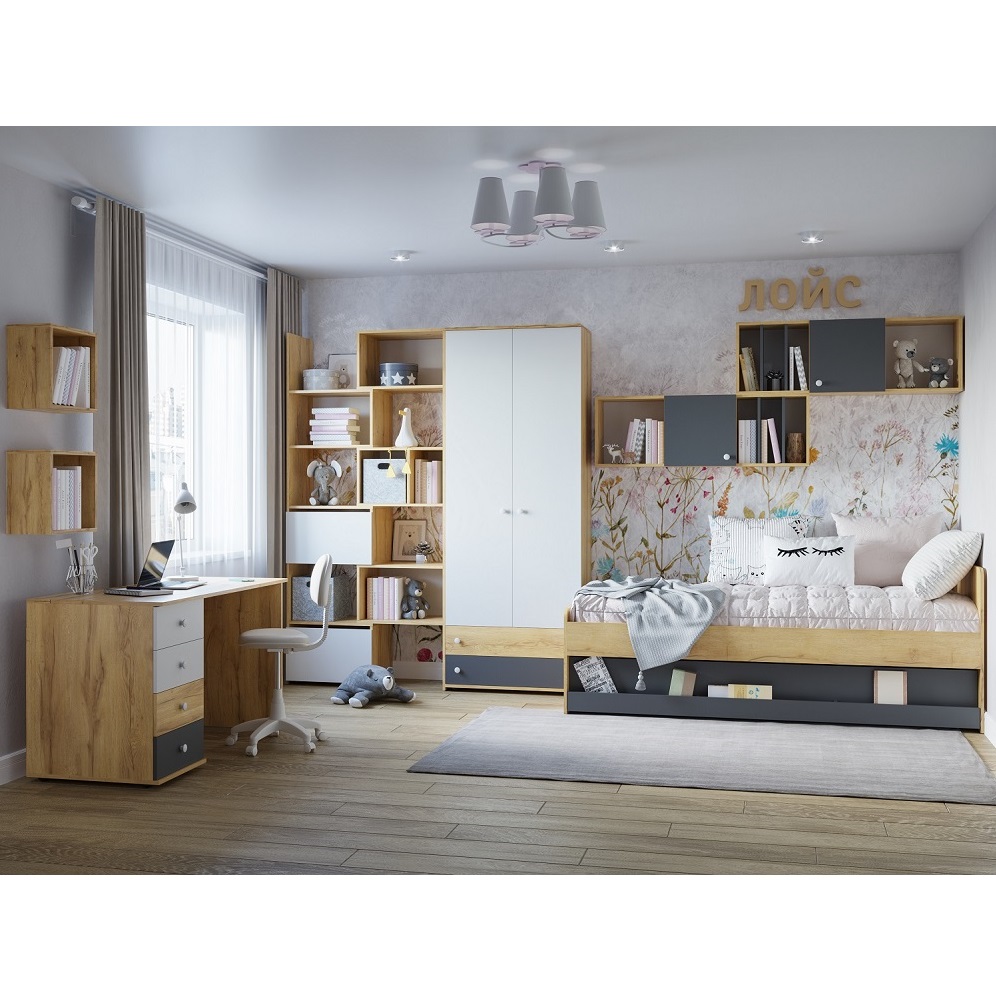 Мебель из коллекции Лойс - универсальный вариант обустройства молодежной комнаты в современном стиле. Благодаря разнообразию модулей Вы сможете с комфортом организовать спальную зону, рабочий уголок и зону хранения вещей ребенка. Уникальная функциональность, качественные долговечные материалы производства и визуальная привлекательность делает данную коллекцию трендом на рынке корпусной мебели для детских! Ознакомьтесь с каждым из модулей и подберите комплект, подходящий именно Вашему ребенку.