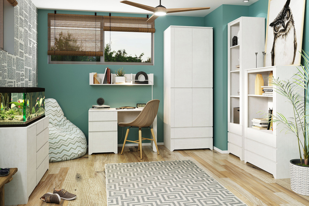 Детская и молодежная коллекция Твист в нейтральном молочном оттенке создана с учетом всех потребностей и включает все необходимое: вместительную систему хранения, письменный стол.