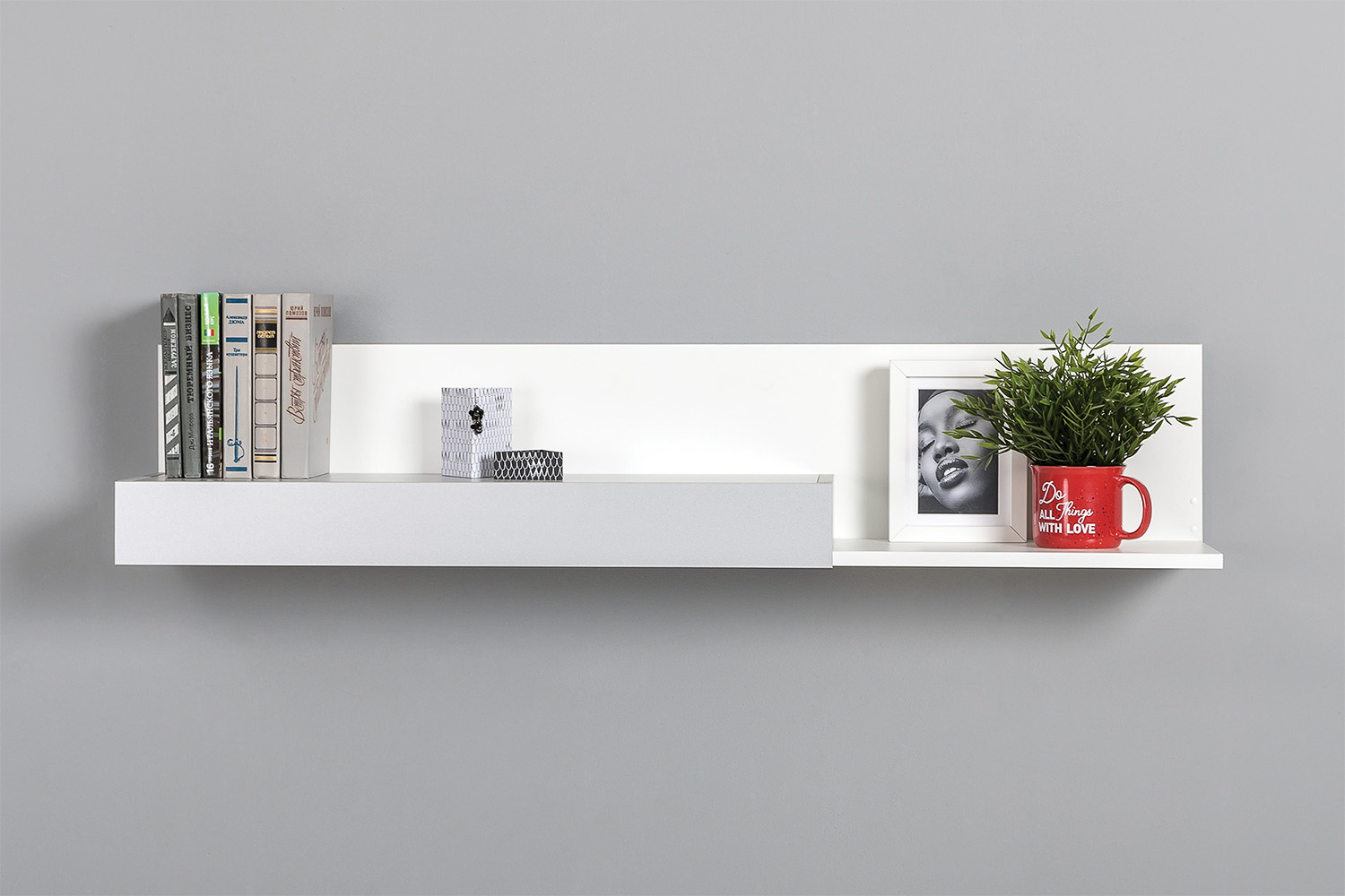 Базовый белый цвет, сочетаясь с акцентным серым, создаёт нейтральную основу интерьера, чтобы подчеркнуть личные вещи и аксессуары.