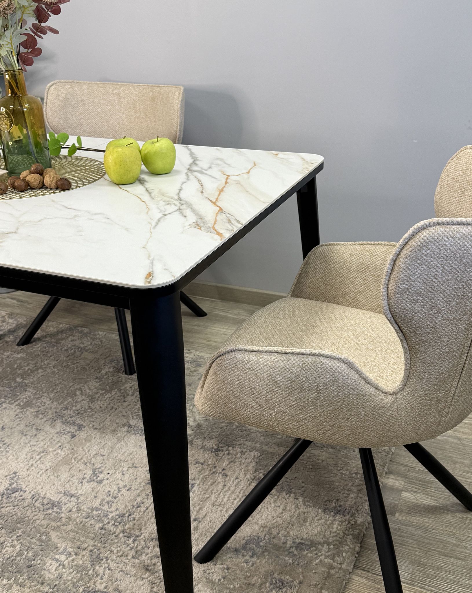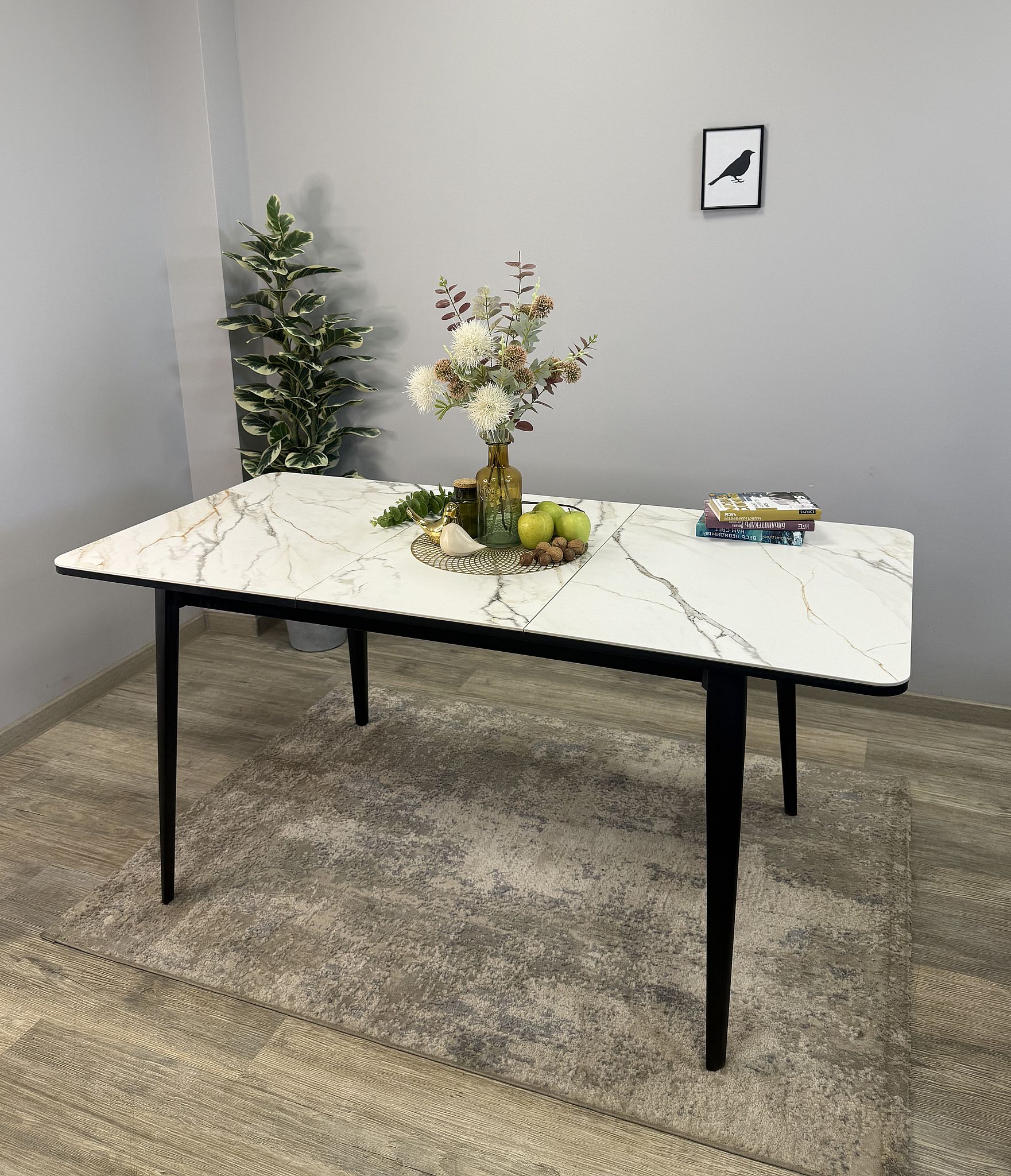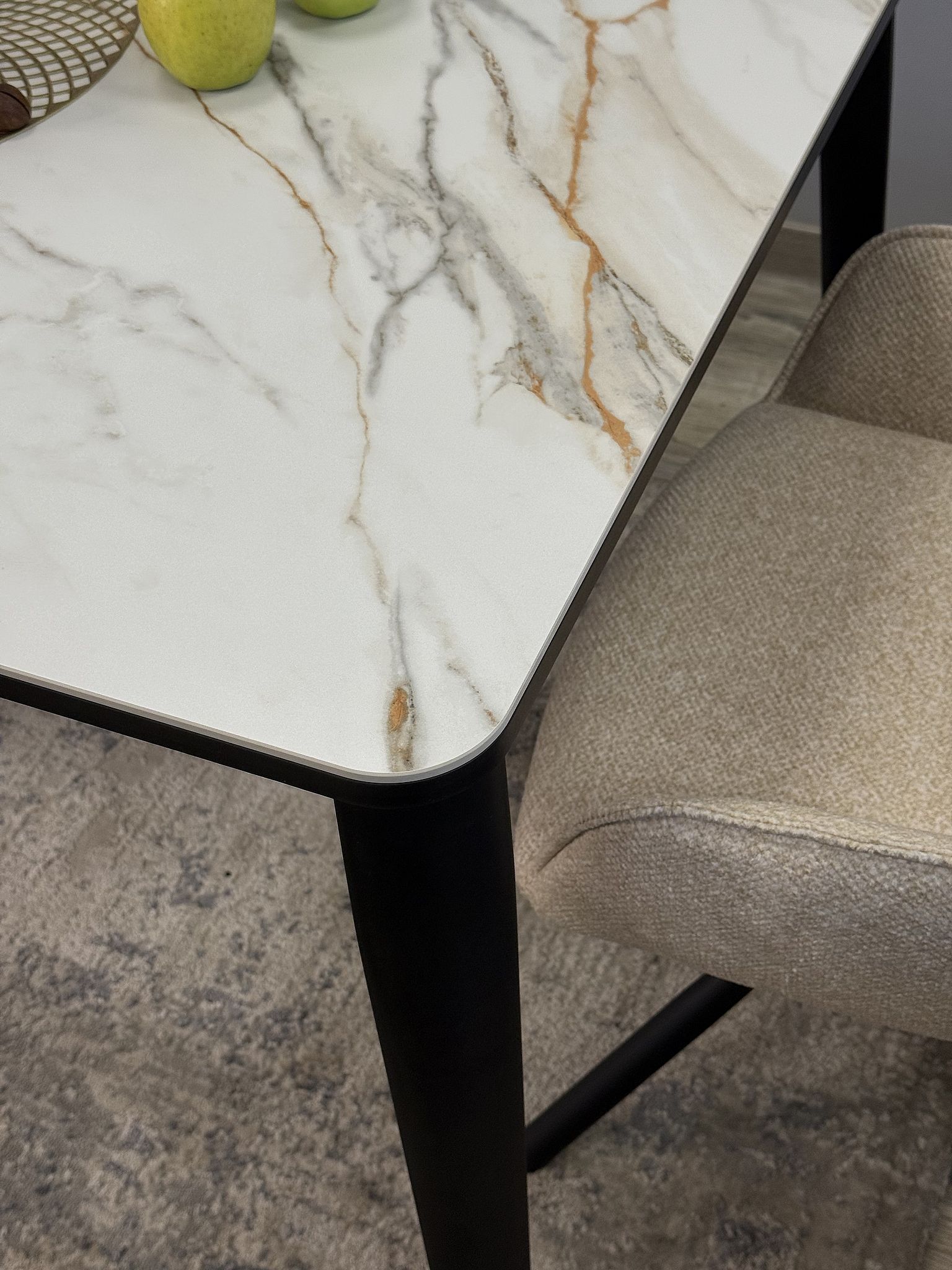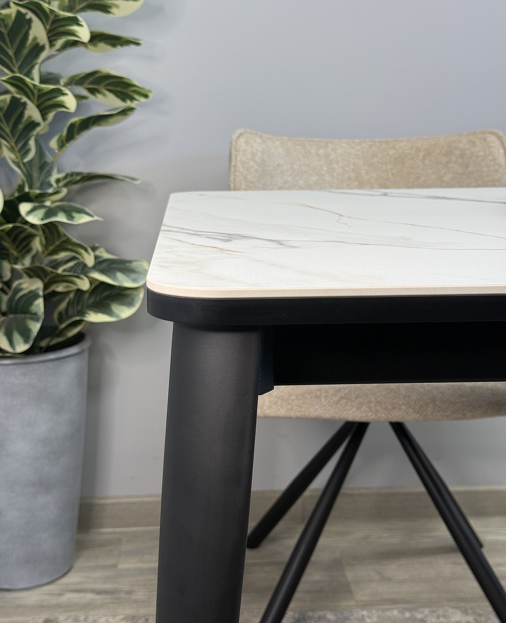 Стол с керамической столешницей и красивыми, функциональными опорами. Керамических столов такого размера очень мало, а размер 120*80 см оптимален для кухни до 13 кв. м. Система раскладки увеличивает стол еще на 45 см благодаря синхронному механизму раздвижения и прогрессивного механизму вставки "дельфин". Вставка с керамикой очень тяжелая и требует специального механизма, предназначенного для керамики. Стол сможет разложить даже ребенок
