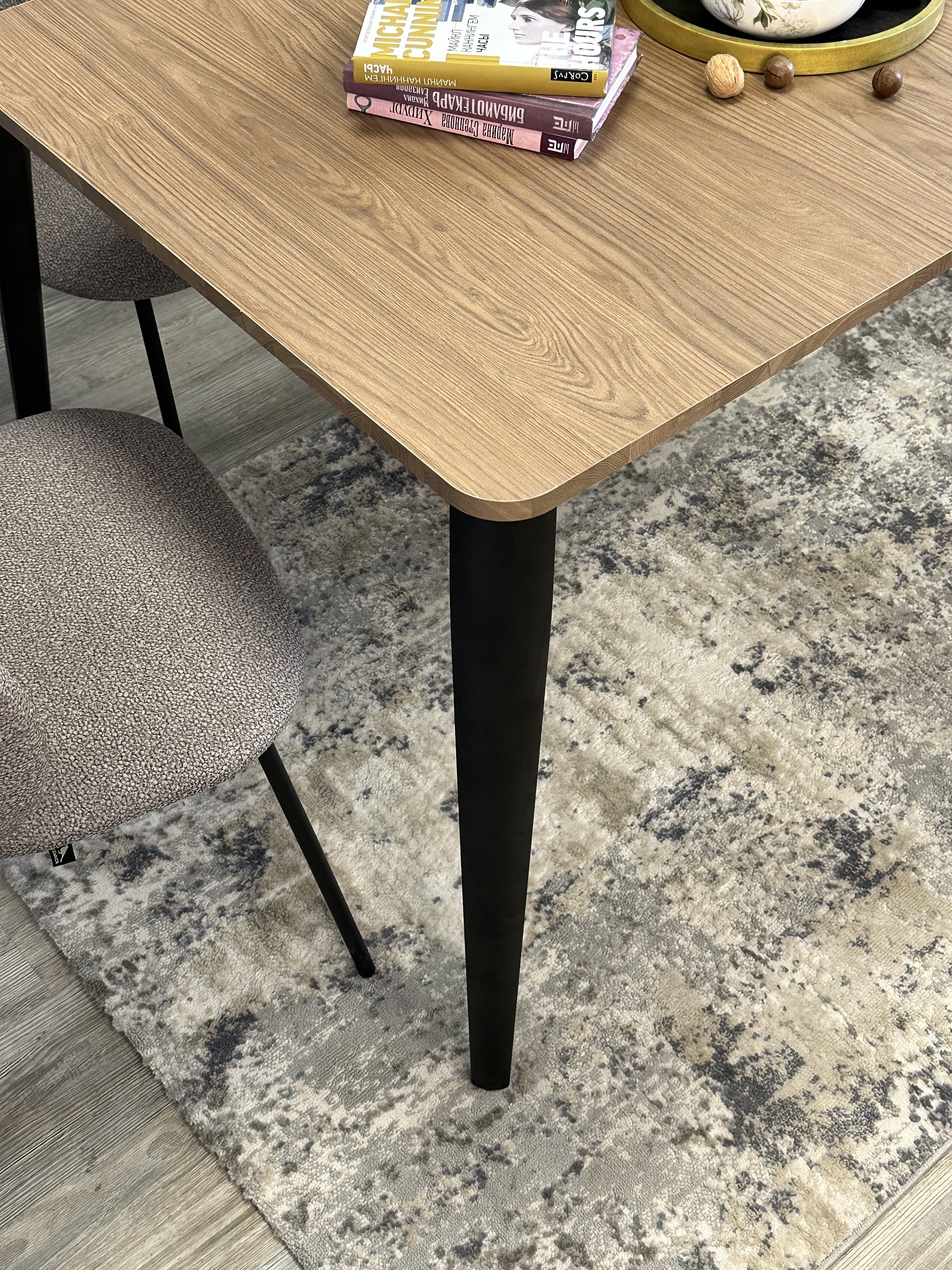 В столе используются дизайнерские опоры, которые Вы не встретите у других столов. Тонкие, очень прочные, они дают достаточную ширину для того, чтобы поставить 2 больших стула по широкой стороне стола. Обеспечивают столу идеальную устойчивость.