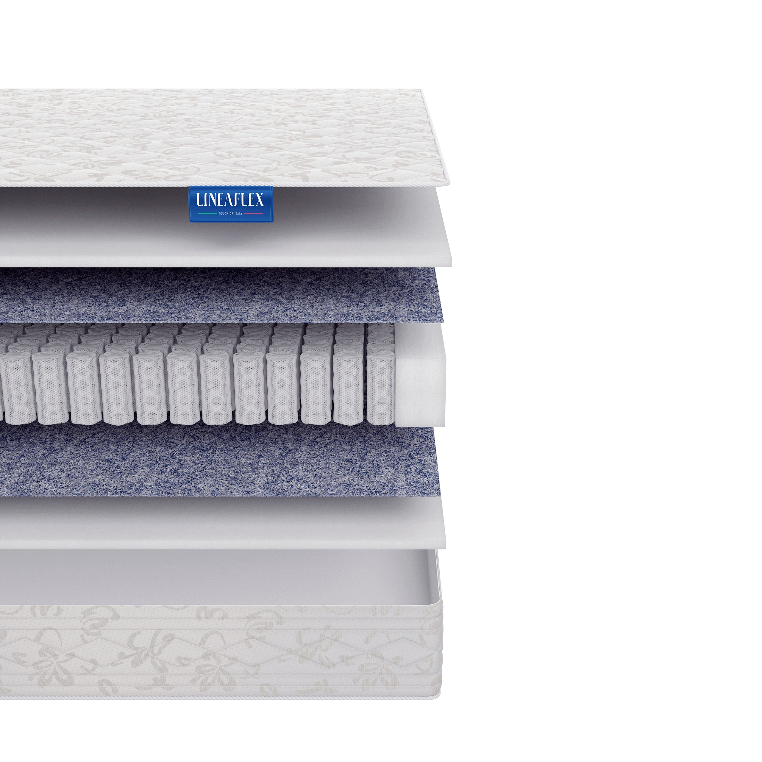 Матрас Lineaflex Como предлагает оптимальное сочетание комфорта и поддержки благодаря независимому пружинному блоку. Это позволяет равномерно распределять нагрузку и обеспечивает удобство во время сна.