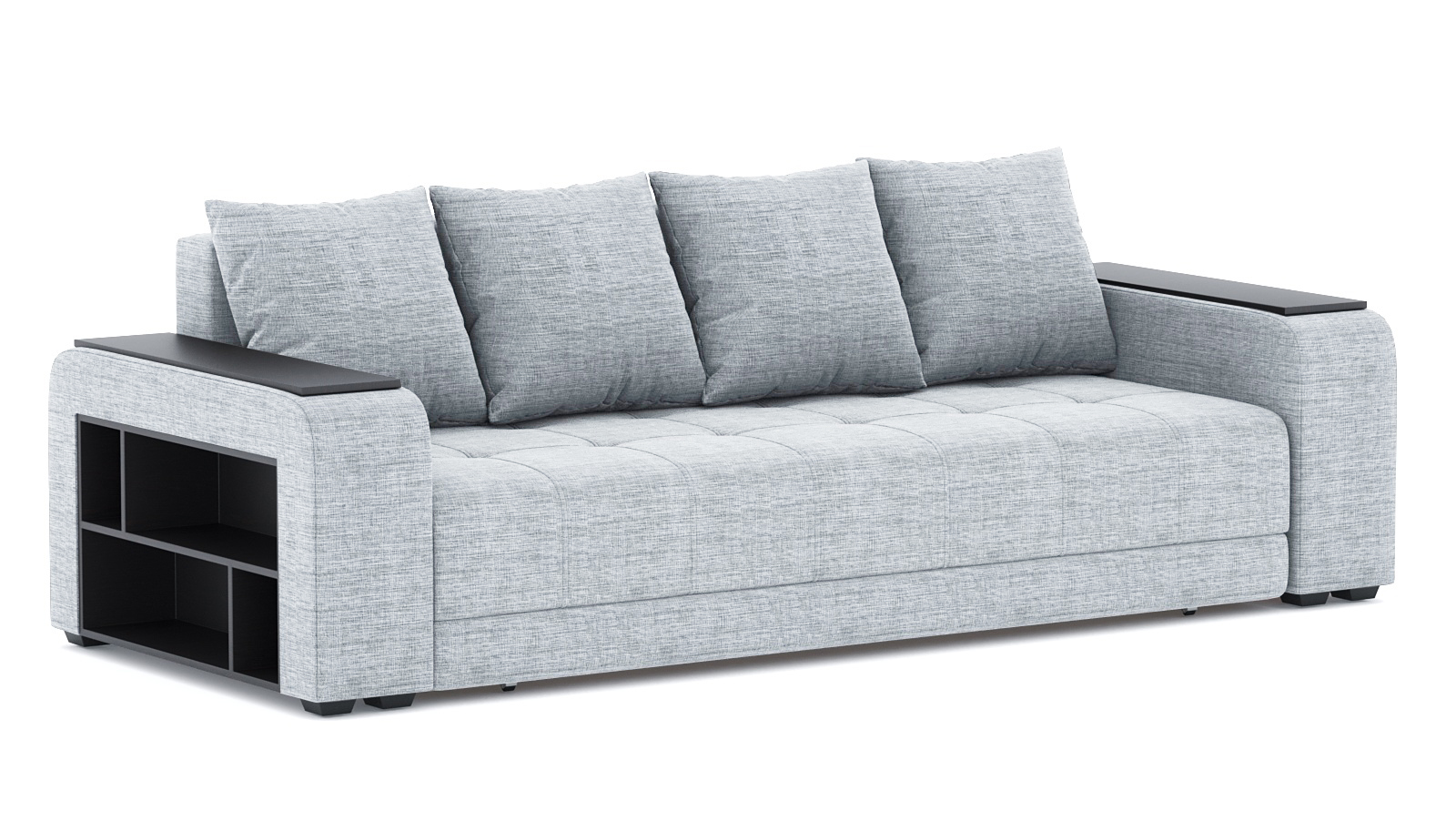 Механизм трансформации еврокнижка-пантограф. Наполнение пружинный блок+ высокоэластичный ППУ. Жесткость-средняя. Чехлы подушек несъемные, наполнение-крошка ППУ. Каркас ДСП, ДВП, ЛДСП, фанера, брус хвойных пород. Спальное место 1900х1600. Ящик для белья есть. Высота сиденья 430мм. Глубина сиденья без подушек 880мм. В комплекте 4 большие подушки.