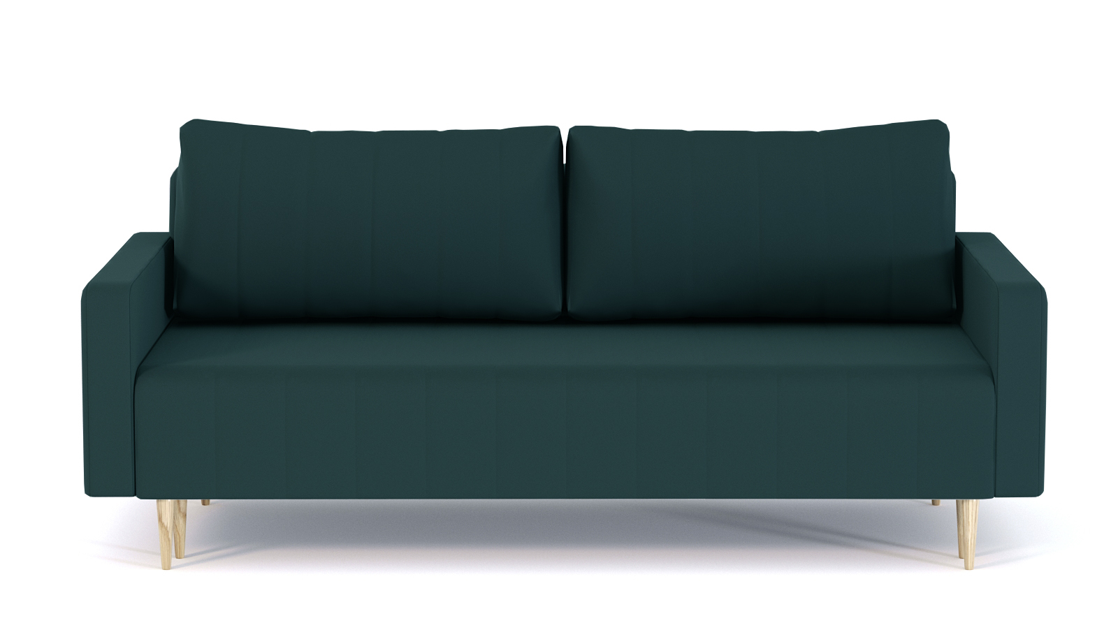 Механизм трансформации-пантограф. Наполнение высокоэластичный ППУ. Жесткость-средняя. Чехол подушек съемный, наполнение-крошка ППУ. Каркас ДСП, ДВП, ЛДСП, фанера, брус хвойных пород. Спальное место 1950х1440. Ящик для белья есть. Опоры массив березы. Высота опоры 150мм. Высота сиденья 420мм. Глубина сиденья без подушек 760мм. В комплекте 2 большие подушки.