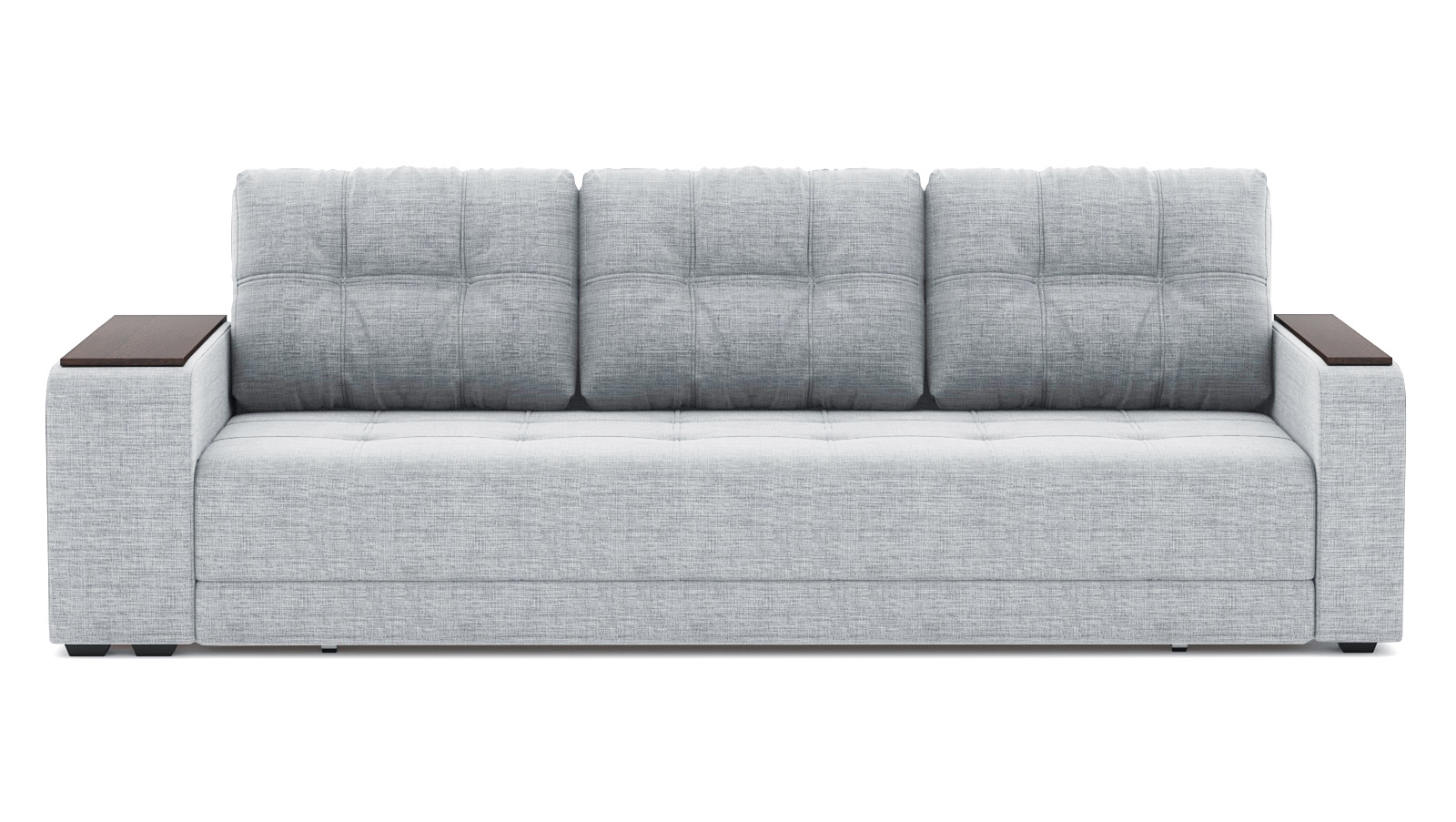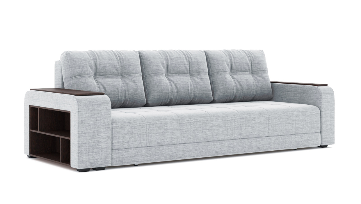 Механизм трансформации еврокнижка. Наполнение высокоэластичный ППУ. Жесткость-средняя. Чехол подушек несъемный, наполнение-крошка ППУ. Каркас ДСП, ДВП, ЛДСП, фанера, брус хвойных пород. Спальное место 2000х1500. Ящик для белья есть. Высота сиденья 430мм. Глубина сиденья без подушек 880мм. В комплекте 3 большие подушки.