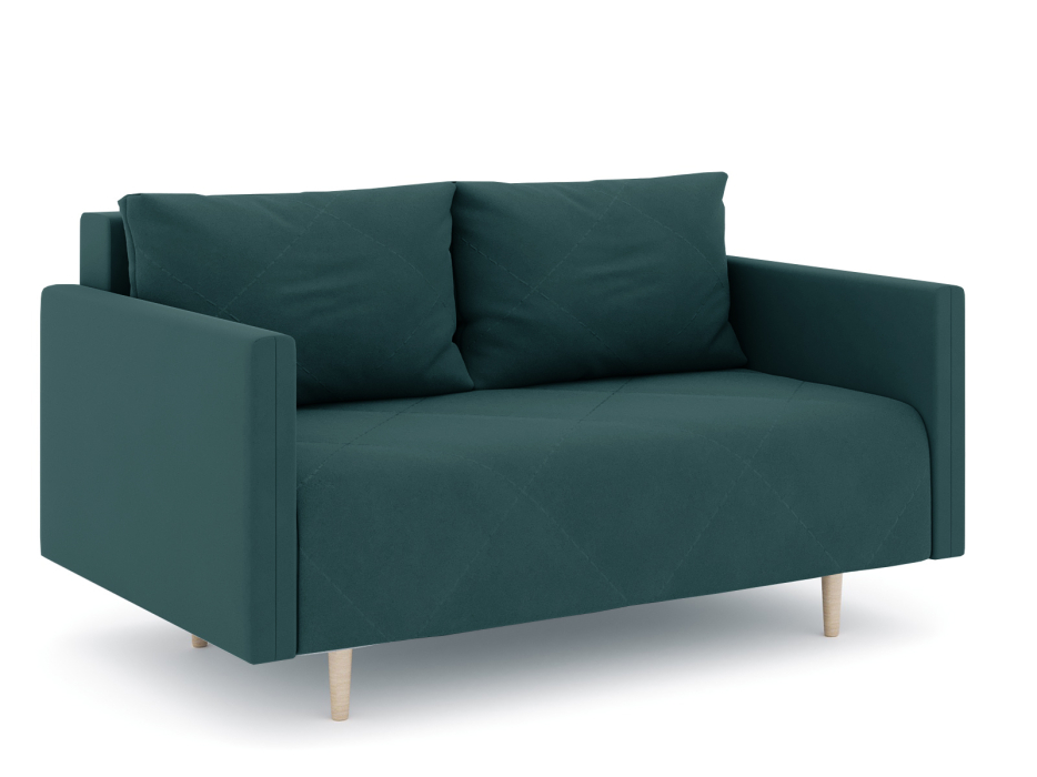 Диван прямой нераскладной Милли мини 2-х местный с подлокотниками, велюр (Изумрудный)