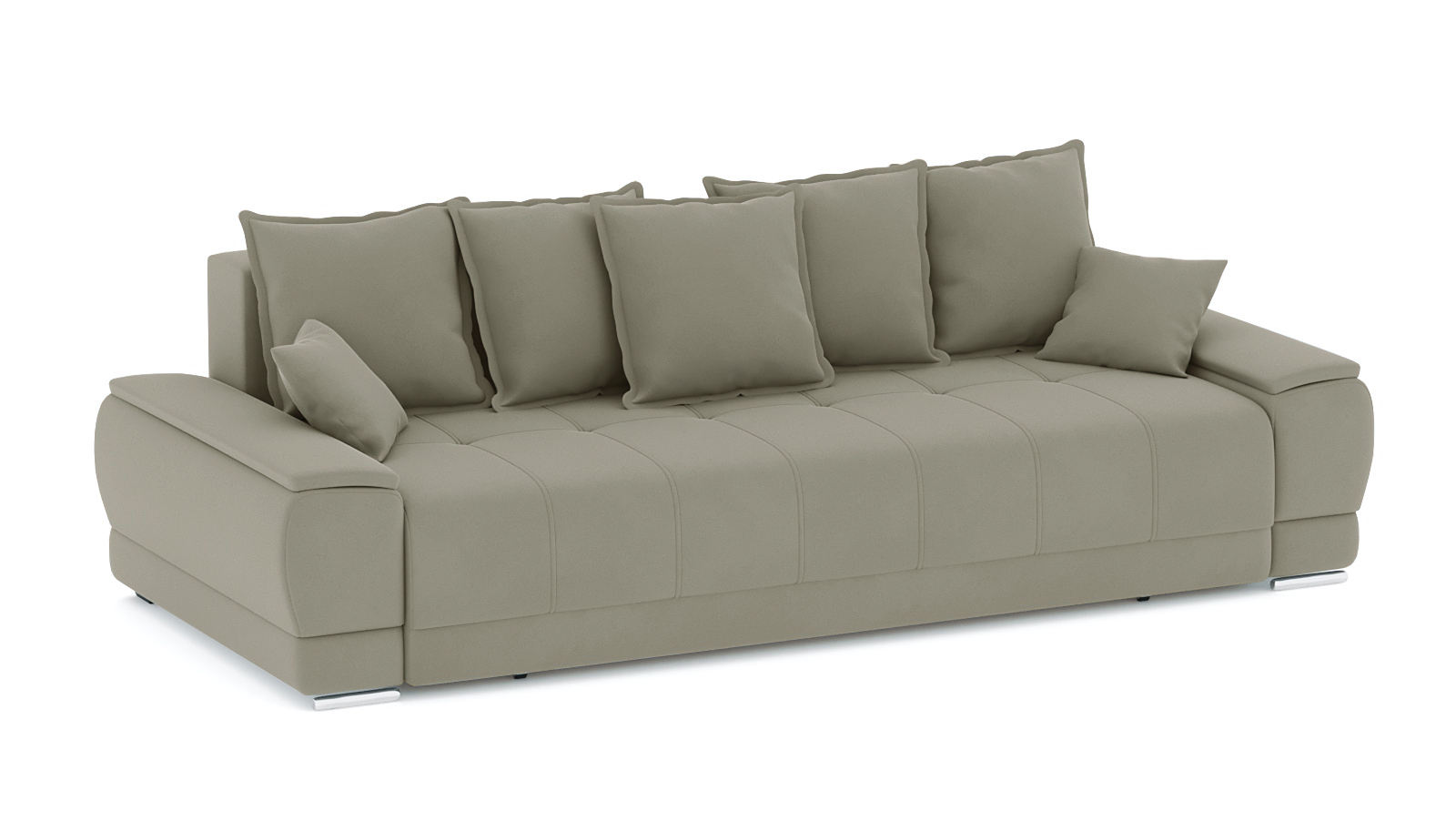 Механизм трансформации еврокнижка. Наполнение высокоэластичный ППУ. Жесткость-средняя. Чехлы подушек несъемные, наполнение-крошка ППУ. Каркас ДСП, ДВП, ЛДСП, фанера, брус хвойных пород. Спальное место 2000х1600. Ящик для белья есть. Глубина сиденья без подушек 860мм. Высота сиденья 44мм. В комплекте 5 больших подушек и 2 декоративные.