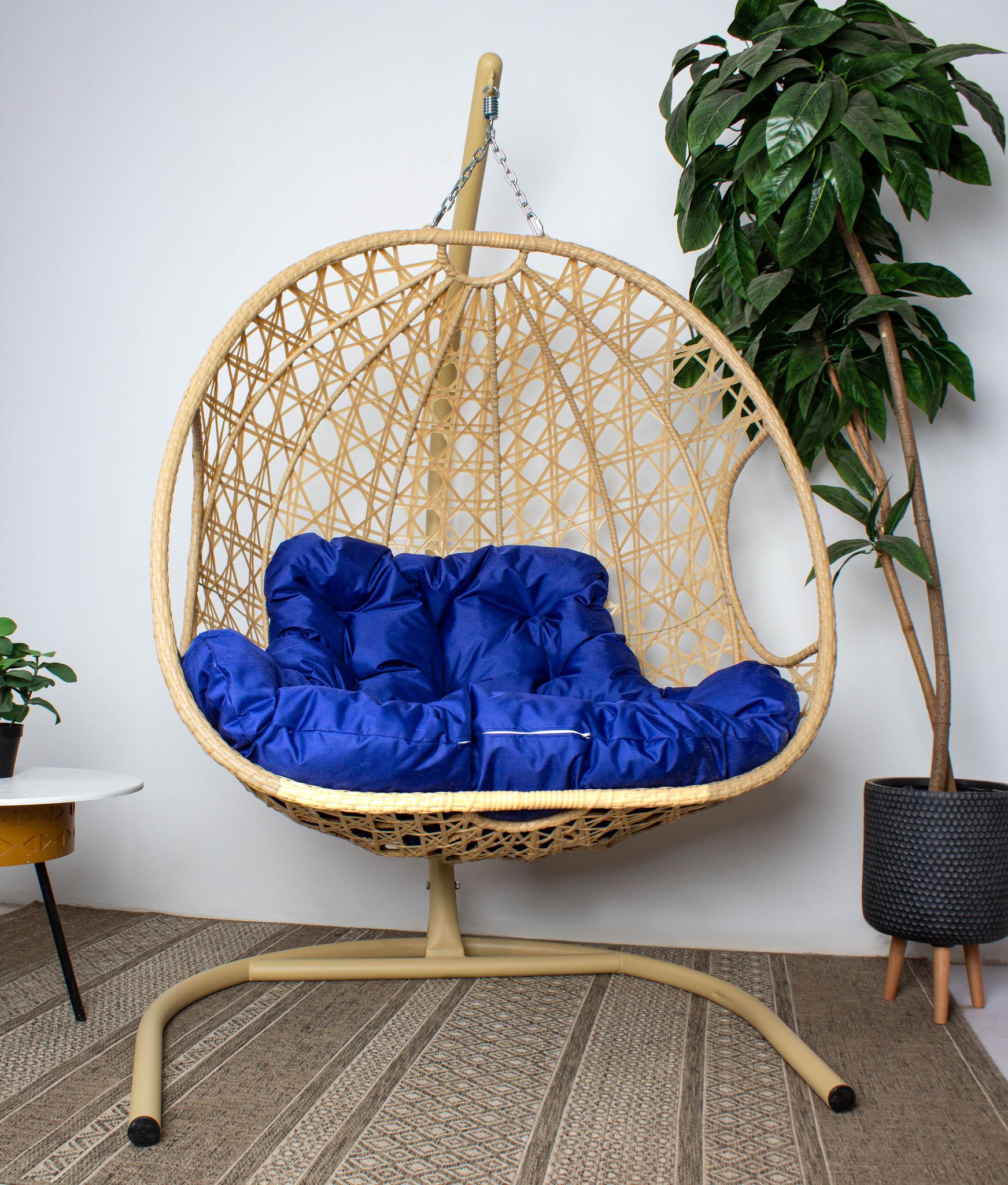 Отзывы о Столплит Подвесное кресло ДЛЯ ДВОИХ ЛЮКС с ротангом бежевое Синий